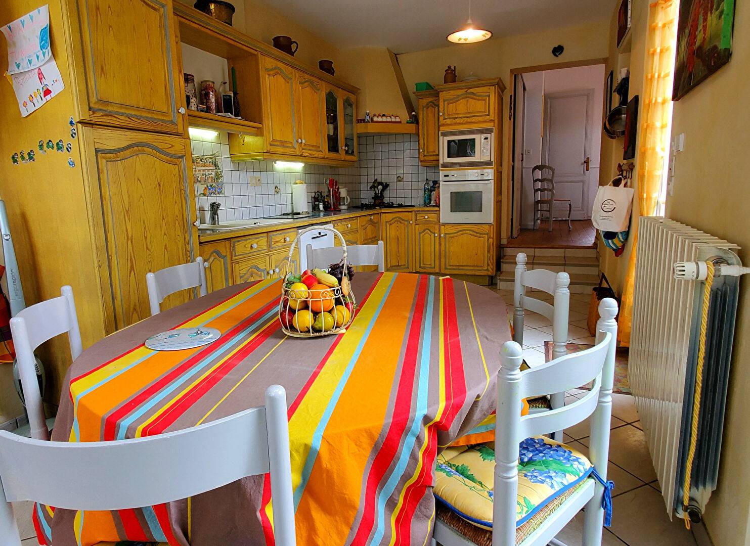 Hall d'entrée desservant un double salon-séjour traversant donnant sur belle terrasse exposée en Est, (3 marches) Grande cuisine semi-ouverte aménagée et équipée avec également accès à la terrasse.