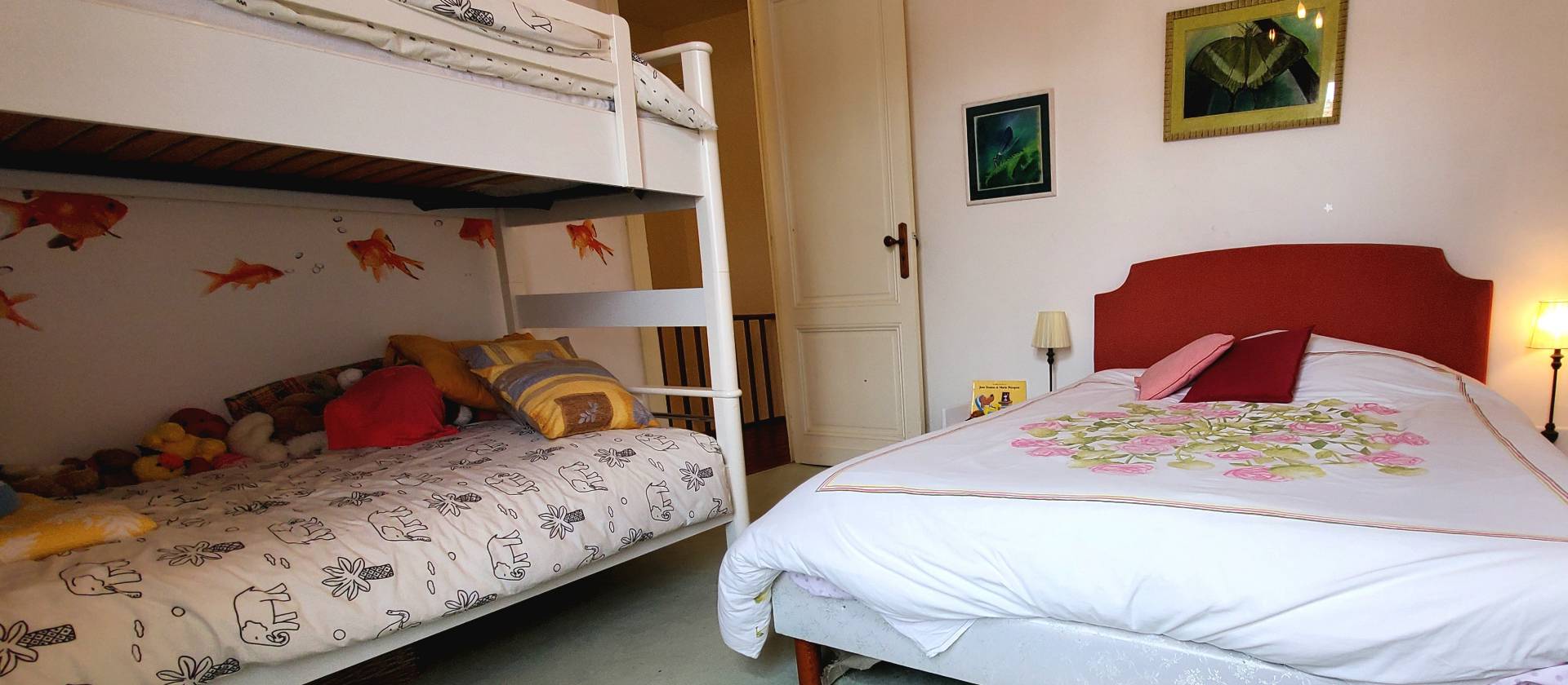 une salle de bains, et une seconde chambre avec 1x lit 140 et lits superposés (2x90).