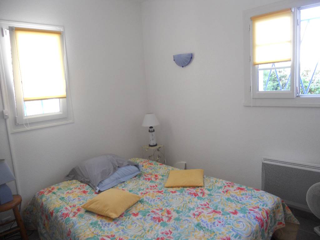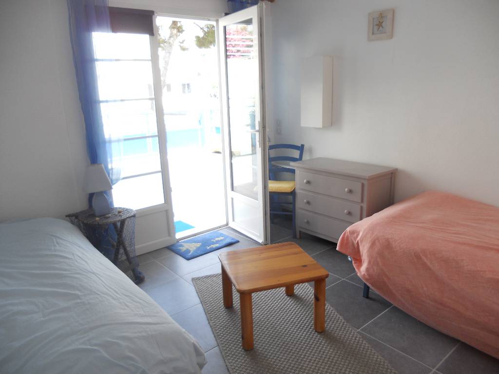 Chambre 1 : 2x lits 90 et 1 chauffeuse, ouvrant sur seconde terrasse,