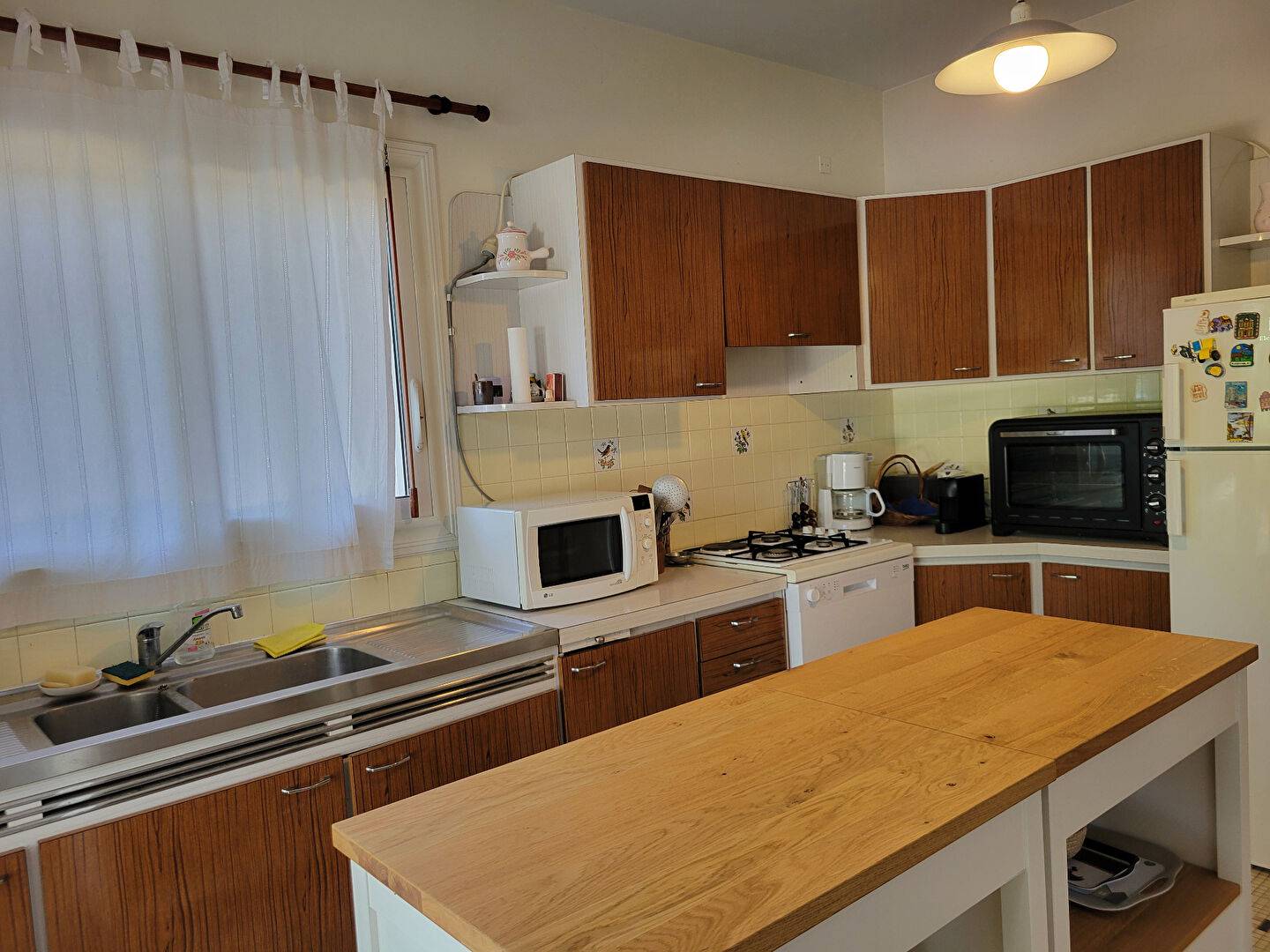 Grande entrée desservant salon-séjour lumineux avec accès à une première terrasse en Sud, cuisine indépendante entièrement équipée avec accès à une seconde terrasse en sud-ouest.