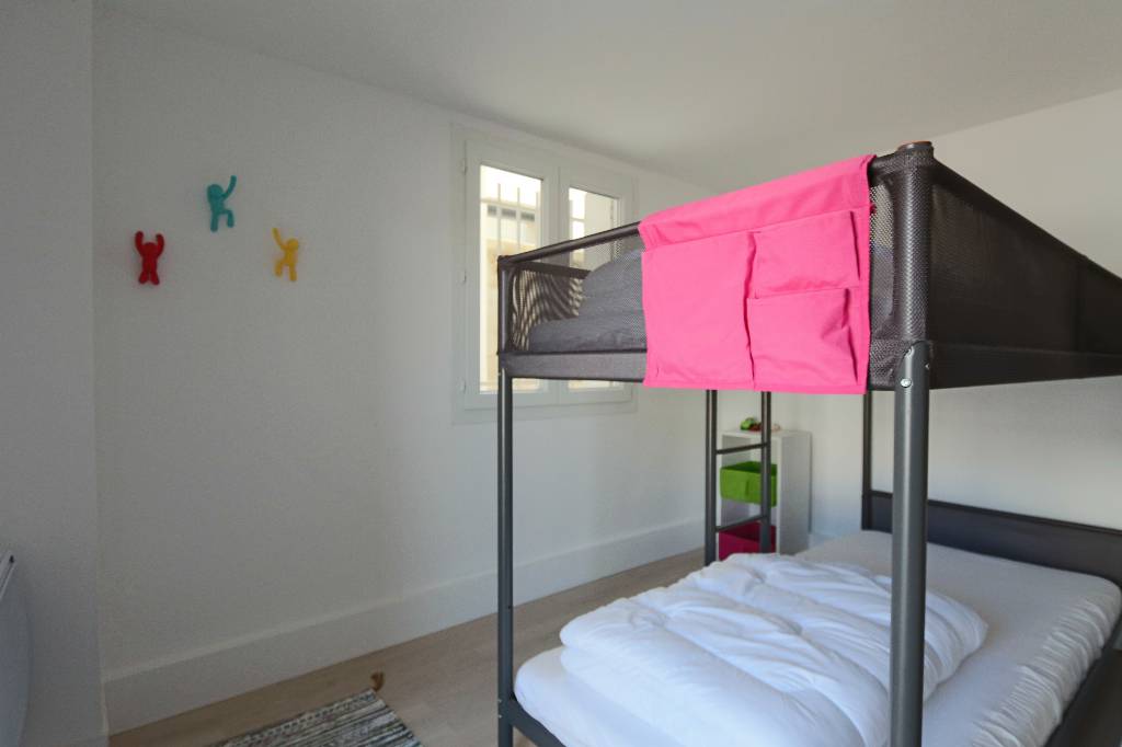 Chambre 2 (lit 140, grand rangement), chambre 3 (lits superposés).