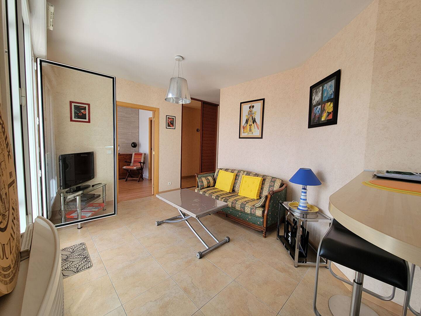 Entrée avec placard, salon-séjour ouvert sur grand balcon, cuisine aménagée et équipée, une chambre (lit 140) avec sa salle d'eau, wc avec lave-mains.