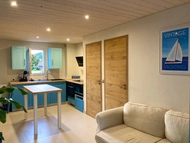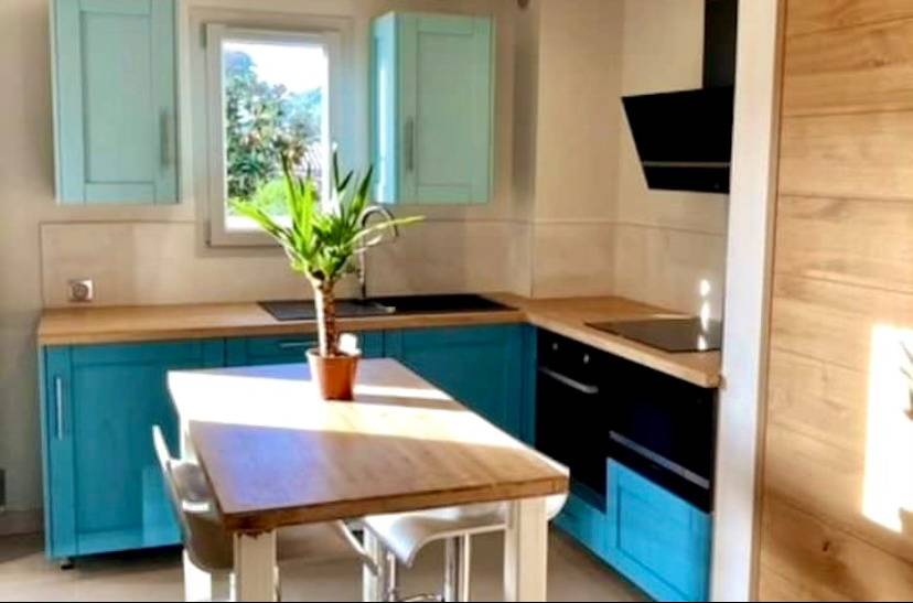 D'une entrée avec placard ouvrant sur cuisine entièrement équipée