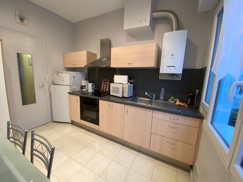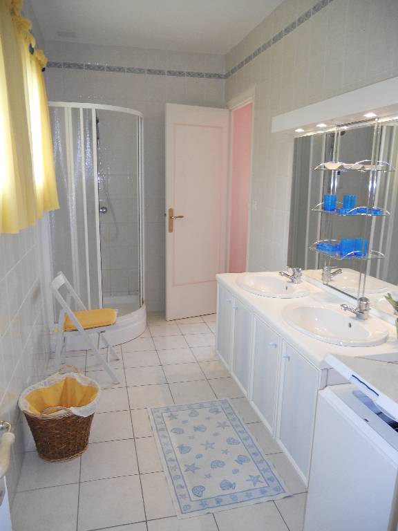 salle d'eau communiquant avec les deux chambres, wc séparés.
