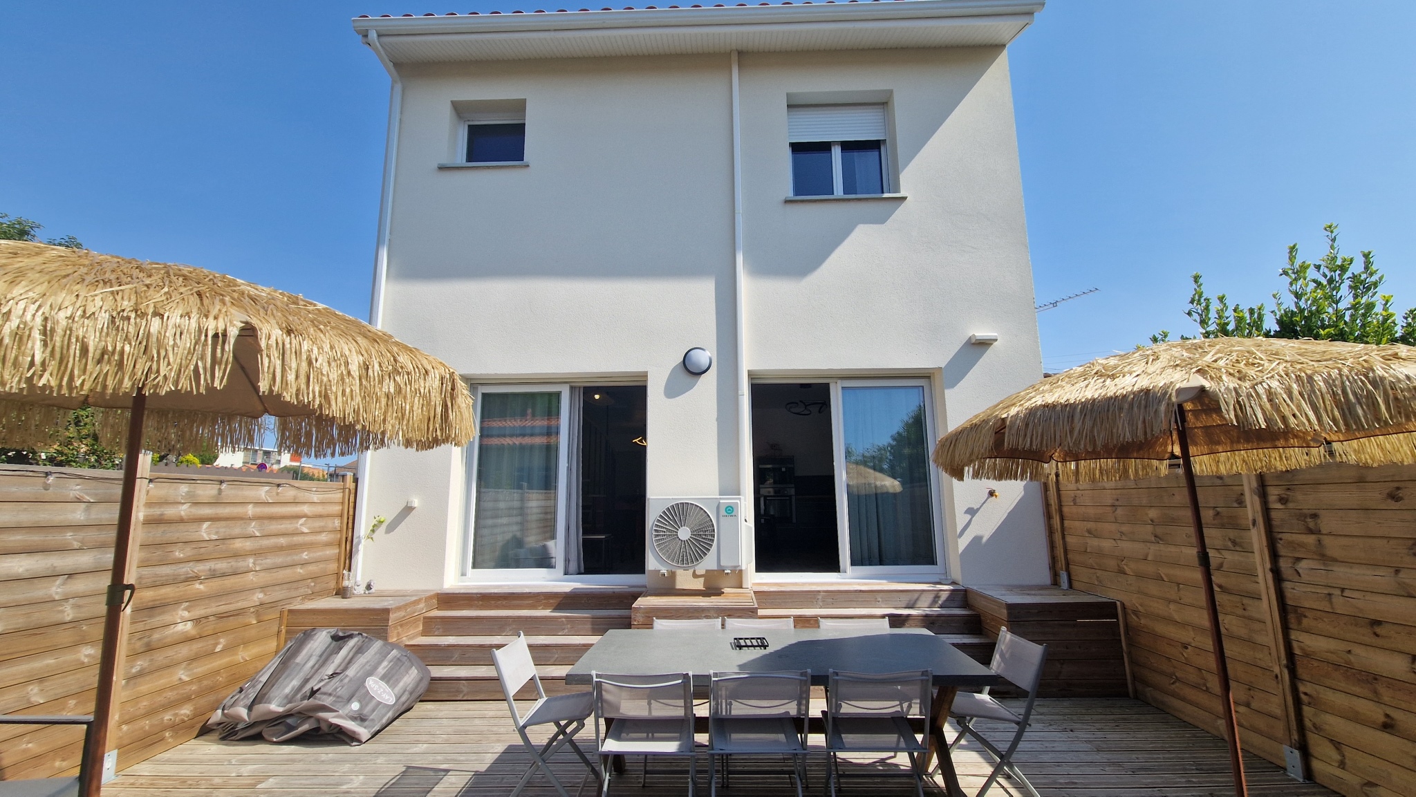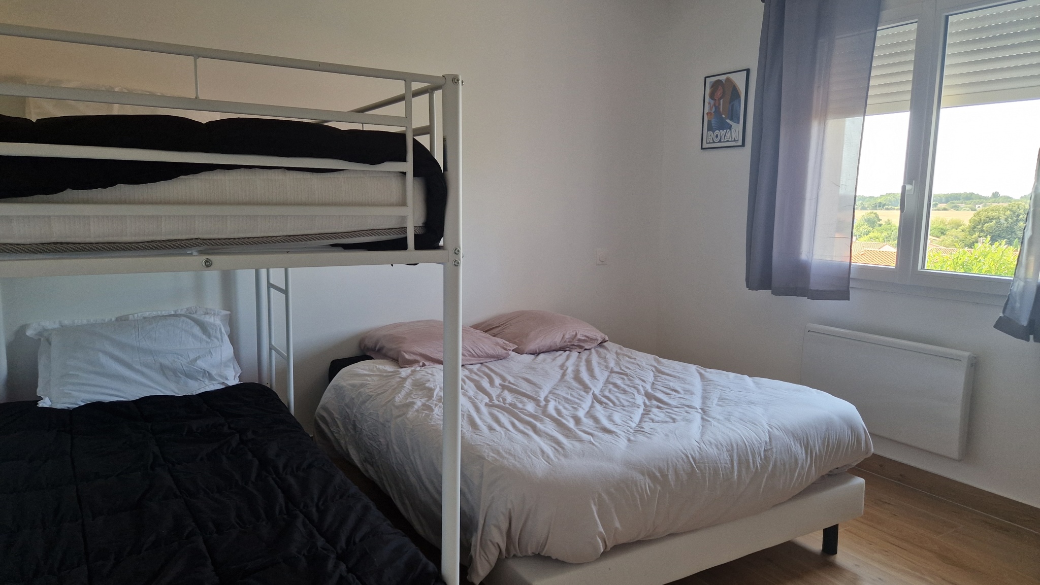 Située à Royan, à 900m du marché central, et à des plages, agréable maison récente de 85 m² pouvant accueillir 8 personnes avec 3 chambres comprenant :