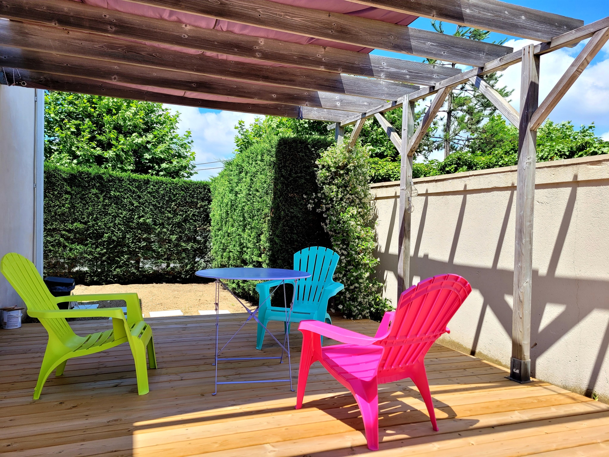 Au calme, à 400 m de la plage de Pontaillac, ses restaurants et ses commerces, villa avec piscine comprenant : une grande pièce de vie avec séjour/salon (table, chaises, TV, canapé-lit, fauteuils, coin bureau) donnant sur une grande terrasse (mobilier de jardin) sa piscine sécurisée (dôme) et un jardin arboré. Une cuisine équipée (four, induction, MO, frigo, lave vaisselle, lave linge) donnant sur une 2e terrasse, le coin nuit avec chambre 1 (lit 140, commode, TV, penderie) et sa SDE (douche, meuble vasque), une chambre 2 (lit 140, commode, placard/penderie) et sa SDE (douche italienne, meuble vasque), un WC séparé avec lave-main.