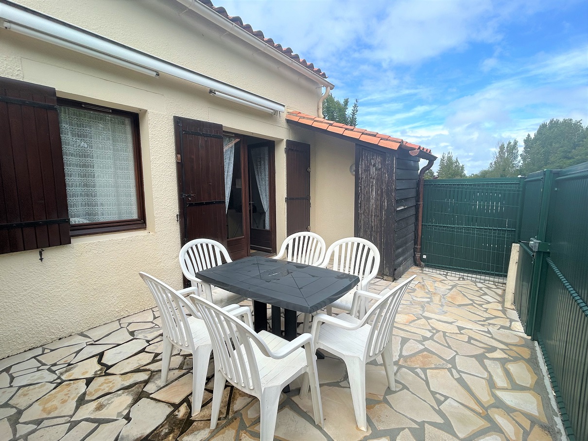 Maisonnette mitoyenne, avec terrasse(salon de jardin, store-ban), parking numéroté, 300m plage de Nauzan/ pistes cyclables