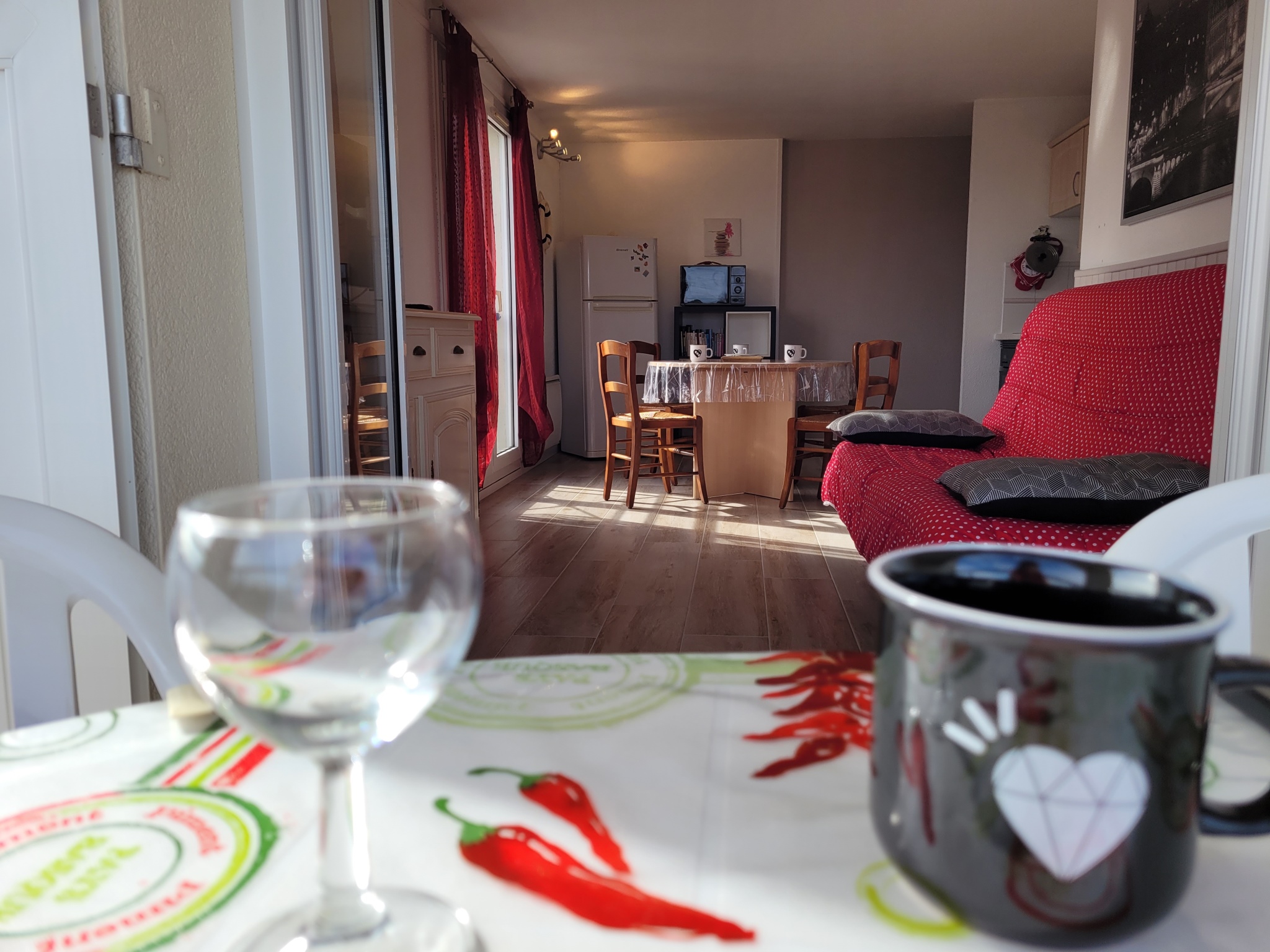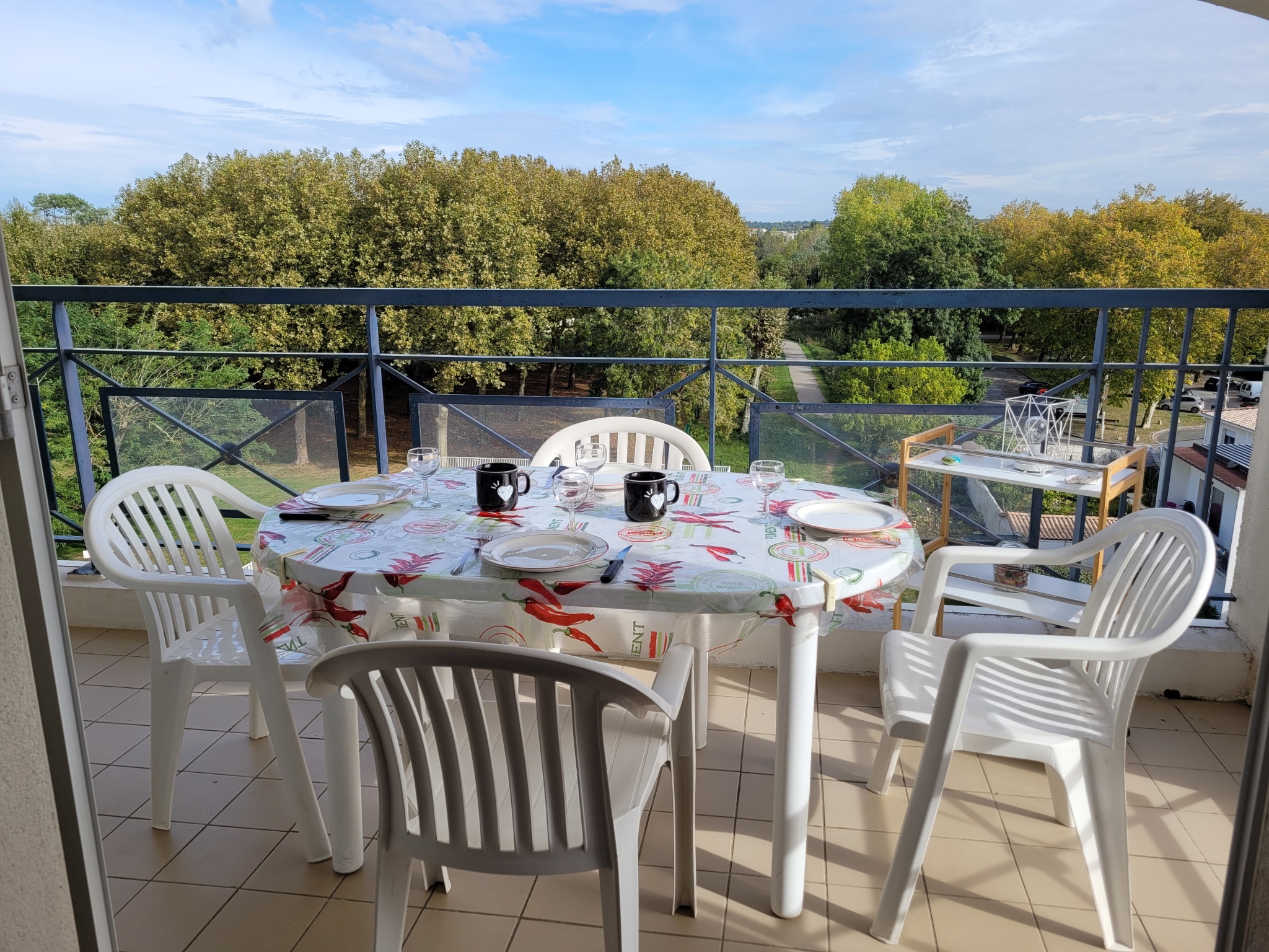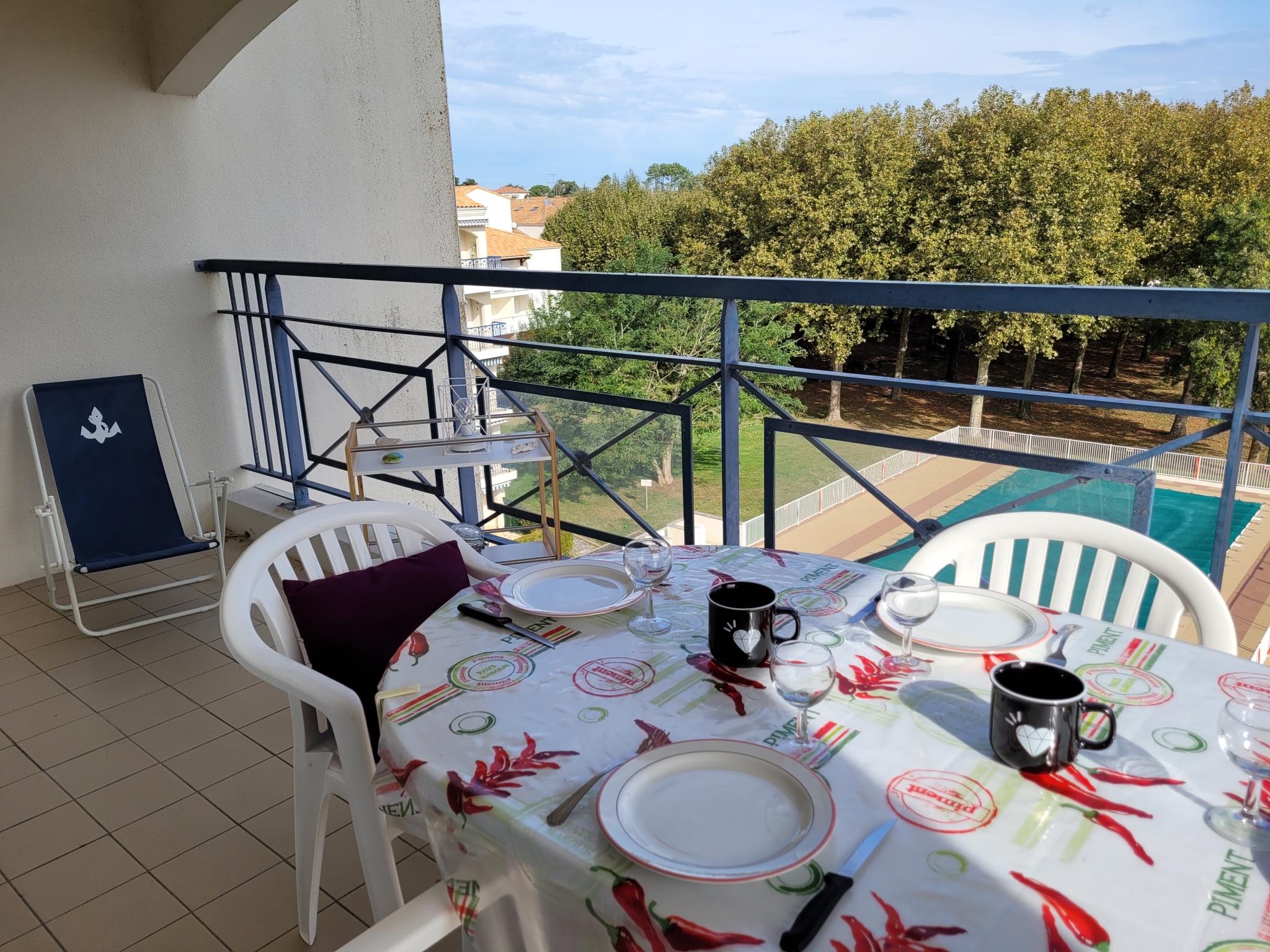 Appartement 2 pièces confortable situé au 3ème étage comprenant : entrée, cuisine équipée (four, lave linge, frigo/congel), grand séjour/salon (table et chaises, vaisselier canapé convertible), 1 chambre (1 lit 140, armoire), wc séparé, salle d'eau (douche à l'italienne), belle terrasse couverte donnant sur piscine et verdure. Parking privatif. Piscine ouverte de début Juillet à fin Août. Animaux non admis.
