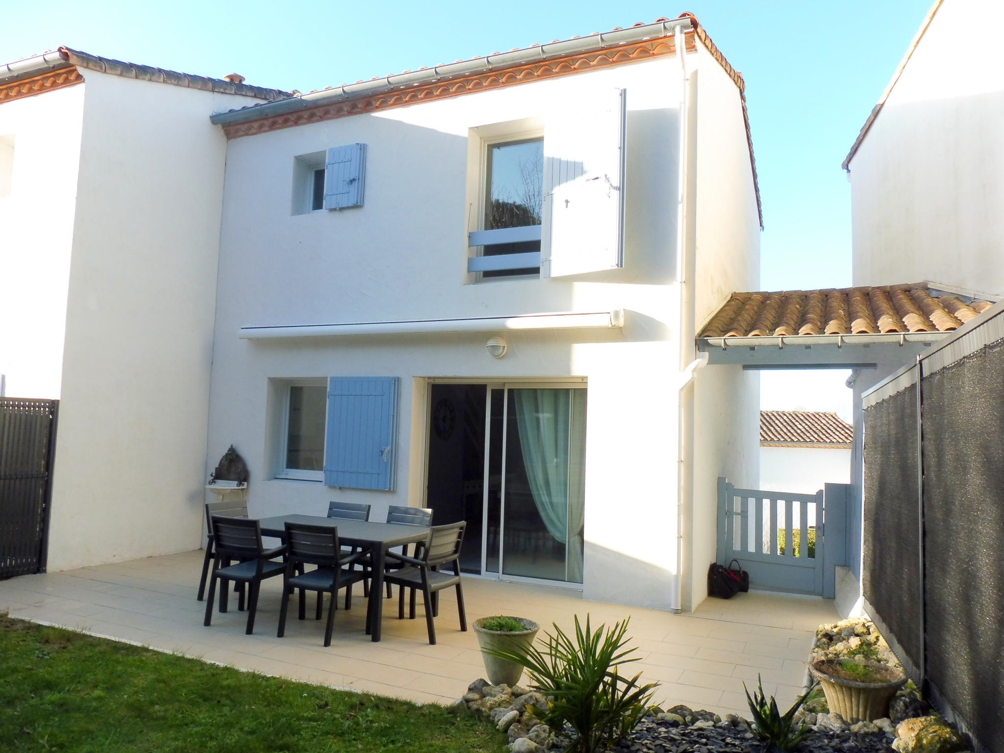 VAUX SUR MER, à 200 m du Lac et 500 m de la plage de Nauzan, Dans résidence de standing, Agréable Maison 3 pièces sur 3 niveaux pour 6 pers comprenant : au rdc l'entrée, salle d'eau avec wc + un accès au garage proposant éventuellement un coin nuit (canapé BZ 2 pers), au 1er étage le séjour/salon avec canapé lit 2 pers + TV et la cuisine équipée avec lave vaisselle ouvrant sur charmant jardin avec coin terrasse, au 2ème étage chambre 1 avec un lit 140 + TV + placard , chambre 2 avec 2 lit 90 + placard, salle de bains, WC. Garage (vélo ou moto) + 1 stationnement extérieur. WIFI. Animaux non admis.