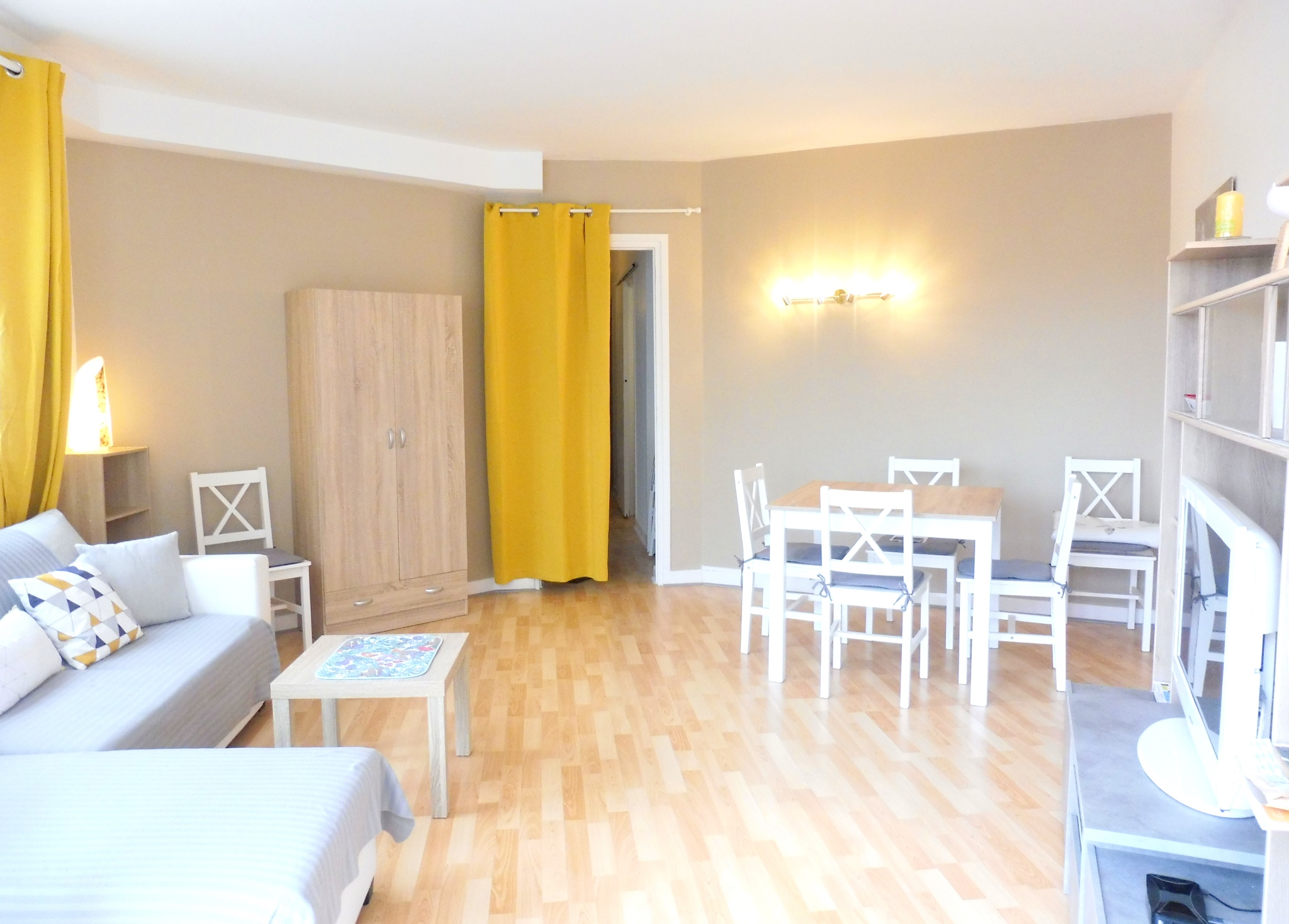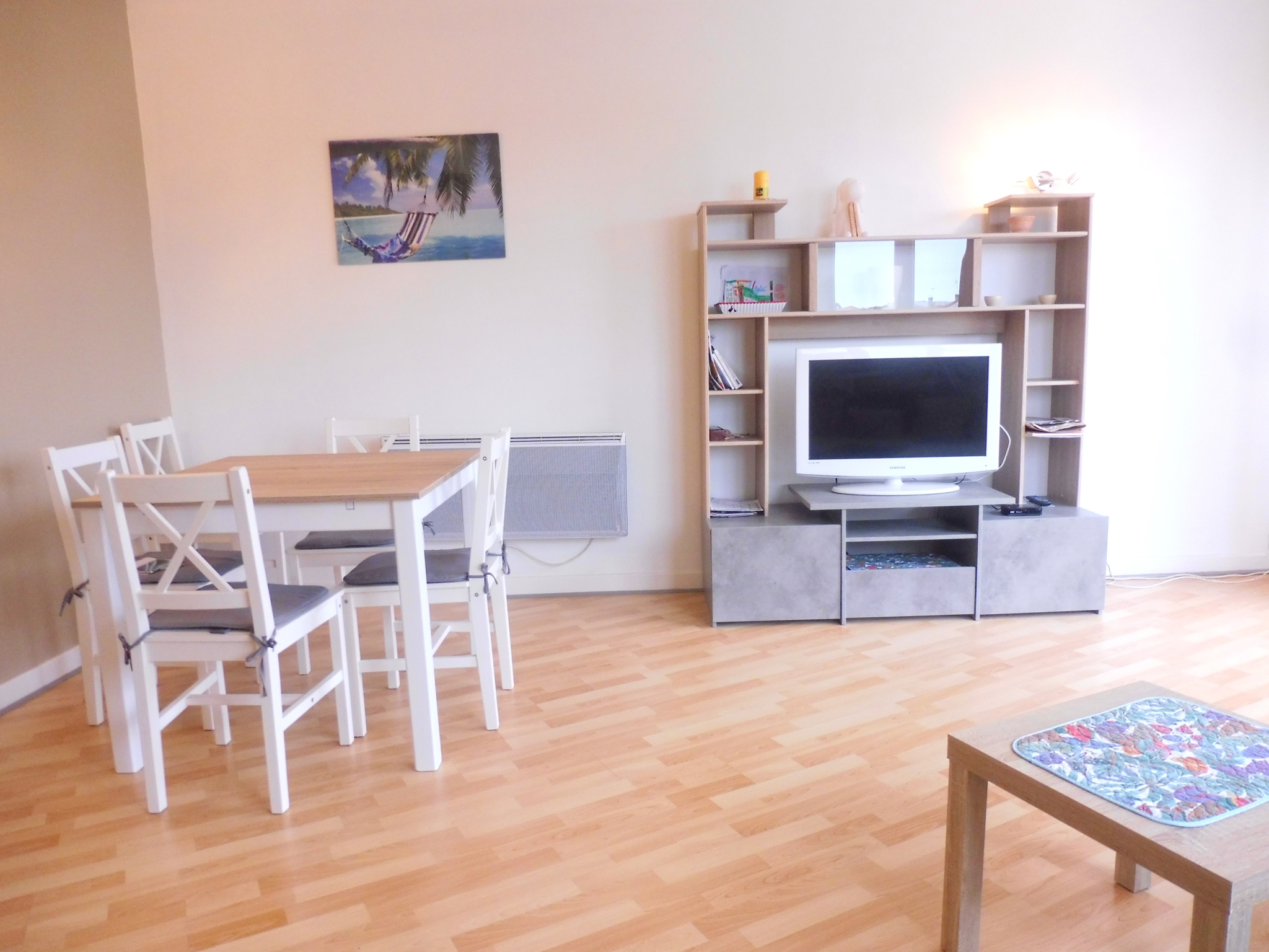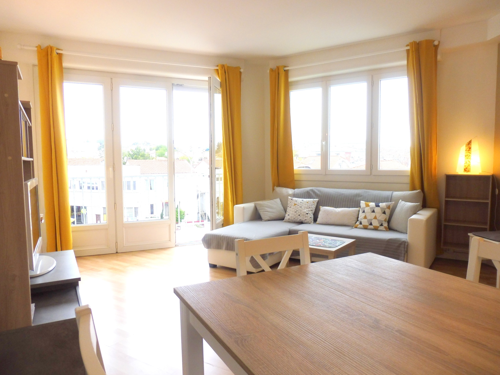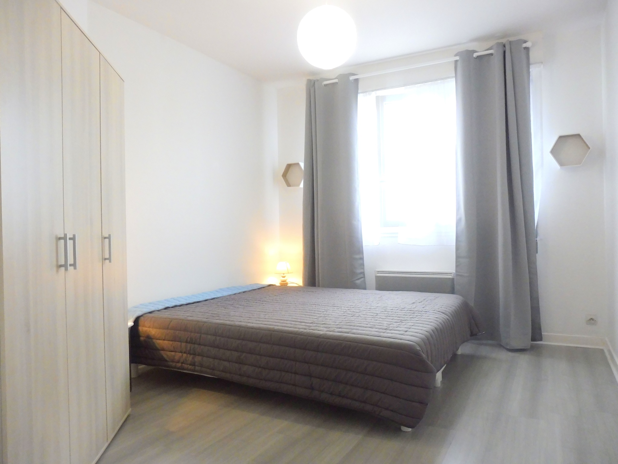 ROYAN - à 200 m du Marché Central et 800m de la grande plage de Royan, bel appartement 2 pièces rénové comprenant : entrée, wc séparé, dégagement, salle de bains, cuisine indépendante équipée (lave vaisselle, four, micro onde) ouvrant sur petite loggia (lave linge), chambre avec 2 lits 80*200 jumeaux + armoire, séjour/salon avec canapé lit 2 pers et TV donnant sur grand balcon. Animaux non-admis.