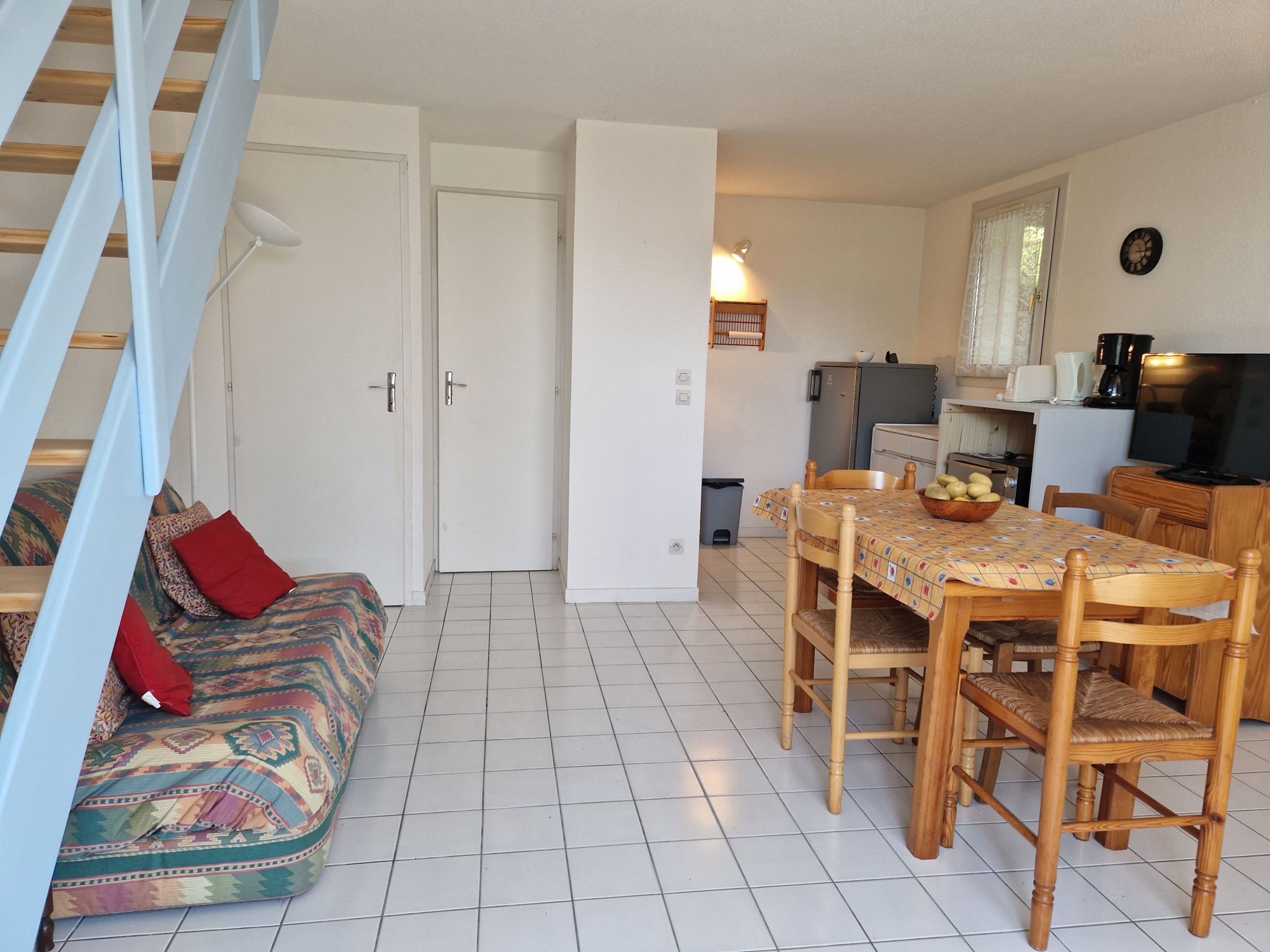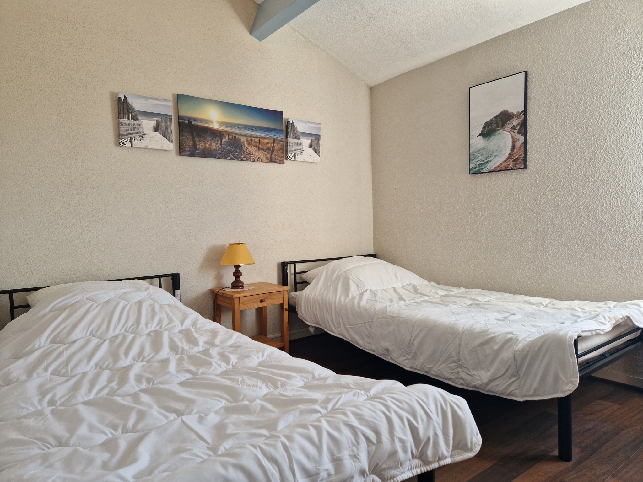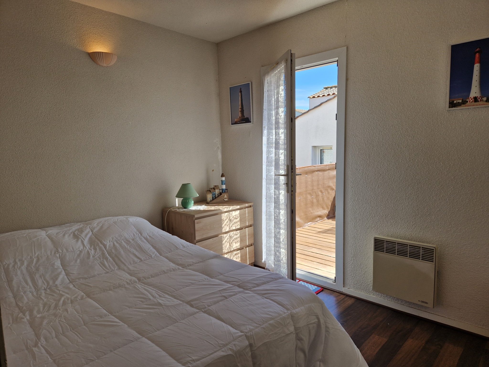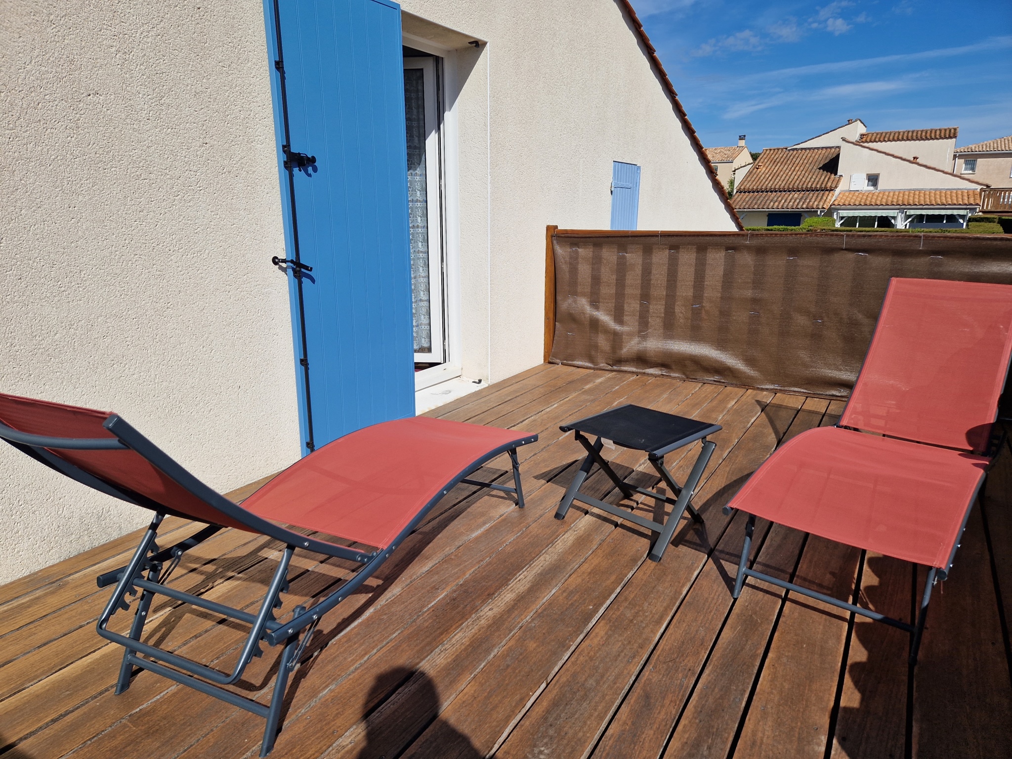 Agréable maisonnette comprenant 2 terrasses : une avec plancha, salon de jardin, ouvrant sur un lumineux séjour/salon avec un espace salle à manger. La cuisine est toute équipée (frigo-congélateur, four, plaques, lave vaisselle). Pour l'étage, il est composé d'une première chambre, avec un lit de 140, donnant accès à une autre petite terrasse. La deuxième chambre est équipée de 2 lits de 90. SDB avec WC séparé. Garage privé.