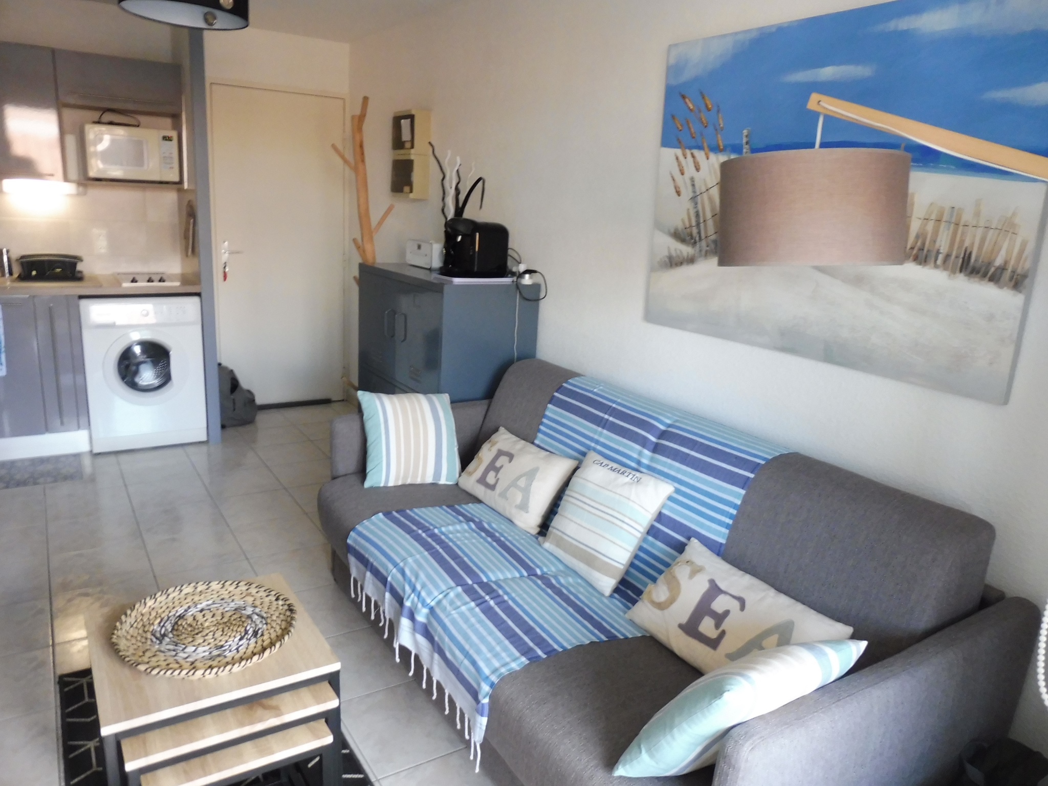 Dans résidence de bord de mer avec piscine, à 250 m de la plage, du casino et des commerces de ROYAN PONTAILLAC, appartement 2 pièces rénové comprenant : une kitchenette équipée (LL, vitro, MO, évier, frigo/congel), un séjour/salon (mange-debout, vaisselier, canapé-lit 160, TV) ouvrant sur une loggia avec coin repas et coin détente (buffet, mini-four, plancha, BZ 140), une chambre (lit 140, placard), une SDE (vasque, douche, placard), et un wc séparé.