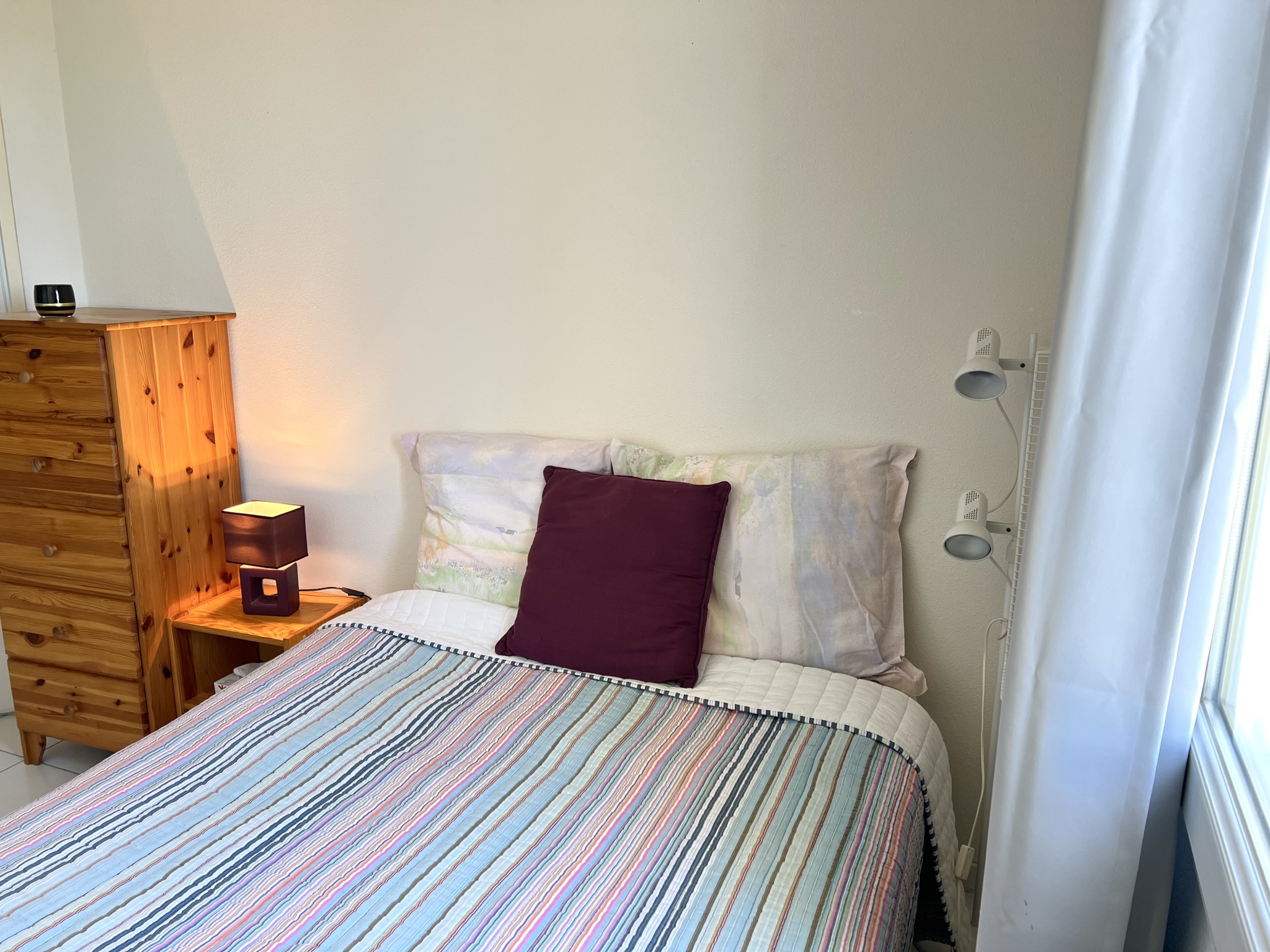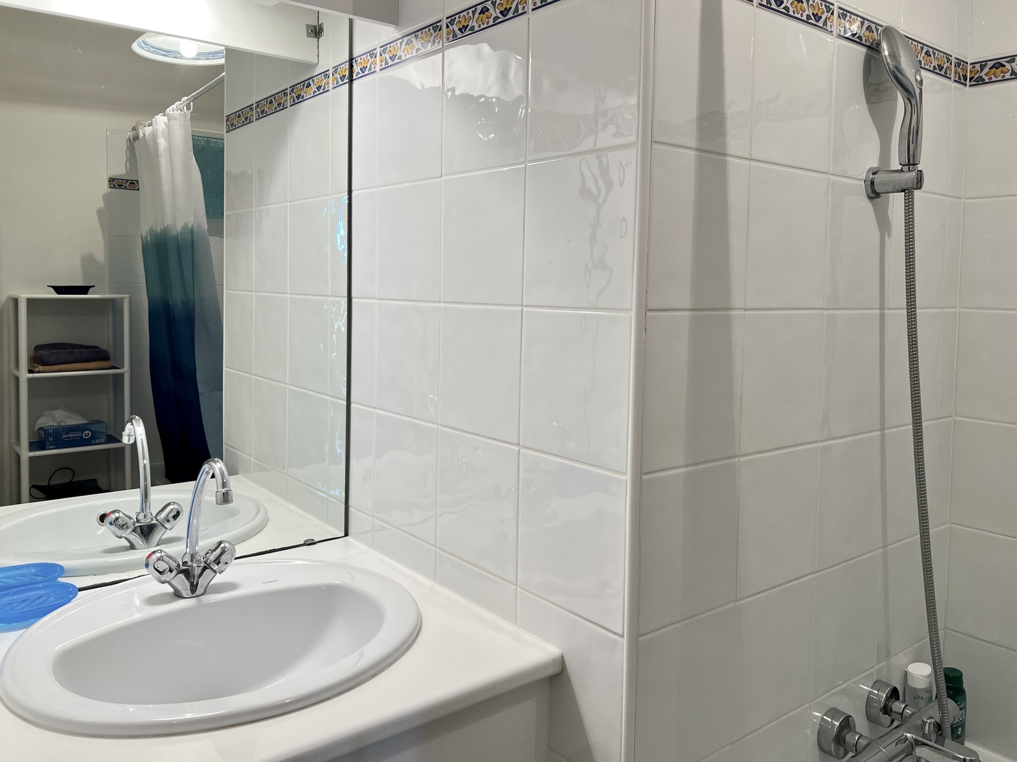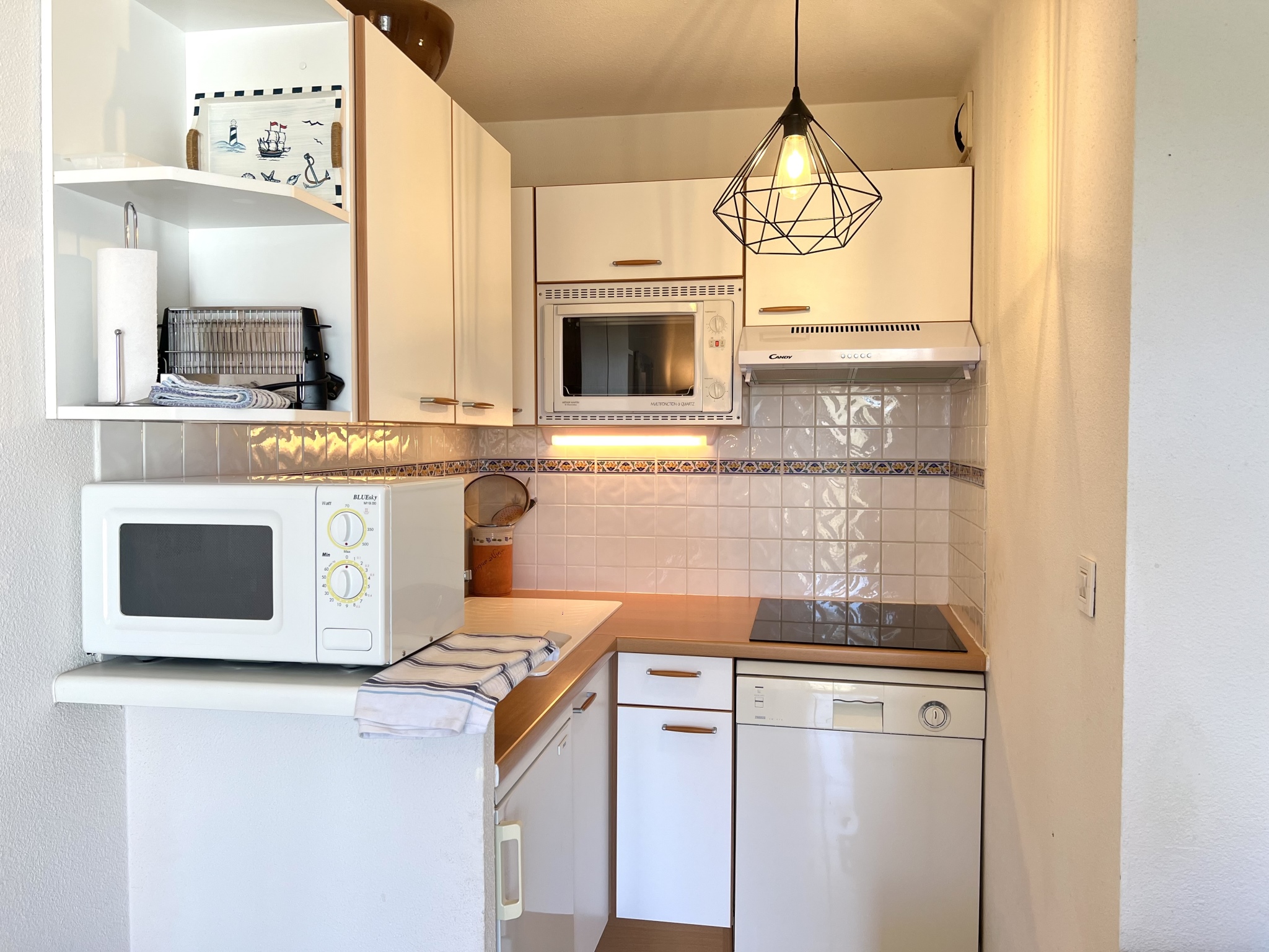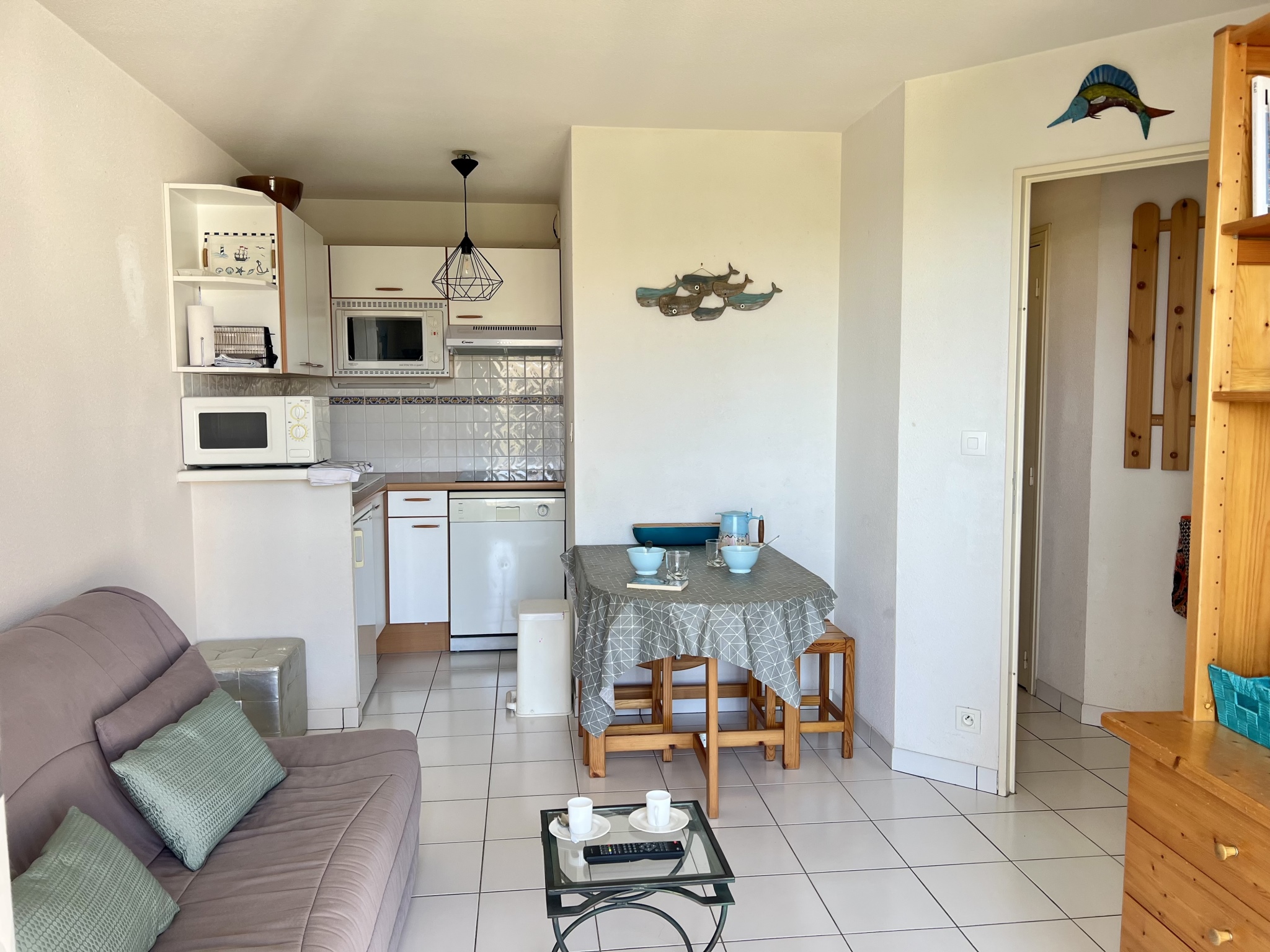 Appartement 2 pièces confortable situé au 2ème étage comprenant : une entrée, wc séparé, salle d'eau, séjour (avec canapé BZ 160*200 + TV) et coin cuisine équipé (LV, MO, mini-four, frigo-top) ouvrant sur terrasse couverte offrant une vue dégagée sur la piscine et le parc, 1 chambre avec 1 lit 140 + placard. Garage privatif. Piscine collective ouverte Juillet et Août.