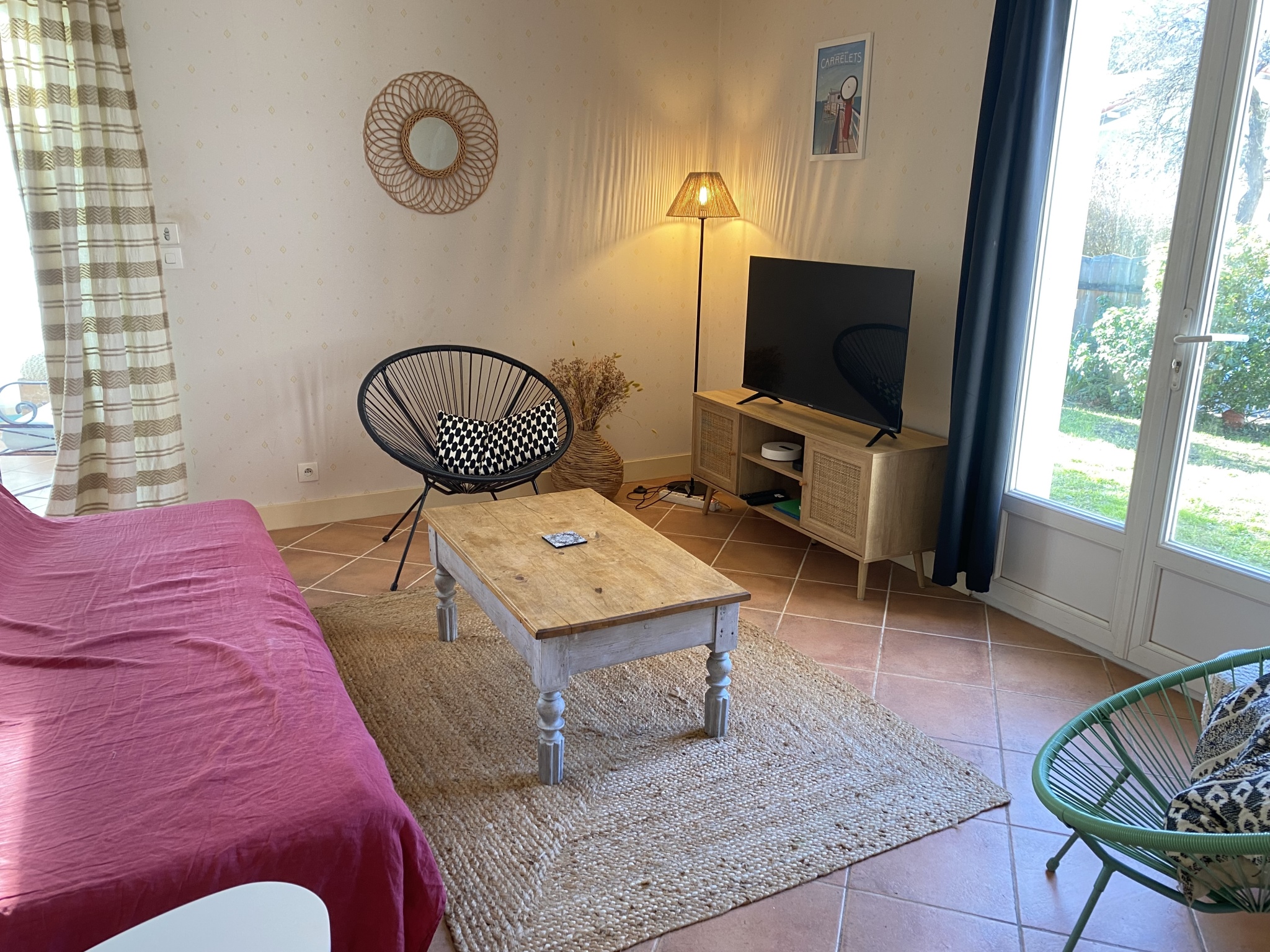 MESCHERS-SUR-GIRONDE – à 20 minutes de Royan. Maison récente de 90 m², à 400m du centre-ville et 800m de la plage, comprenant : un séjour avec salon, cuisine aménagée et équipée, accès au garage et à la véranda. Espace nuit avec 3 chambres, 2 avec des lits doubles et une avec 2 lits simples. Salle d'eau avec douche et baignoire, WC séparé.