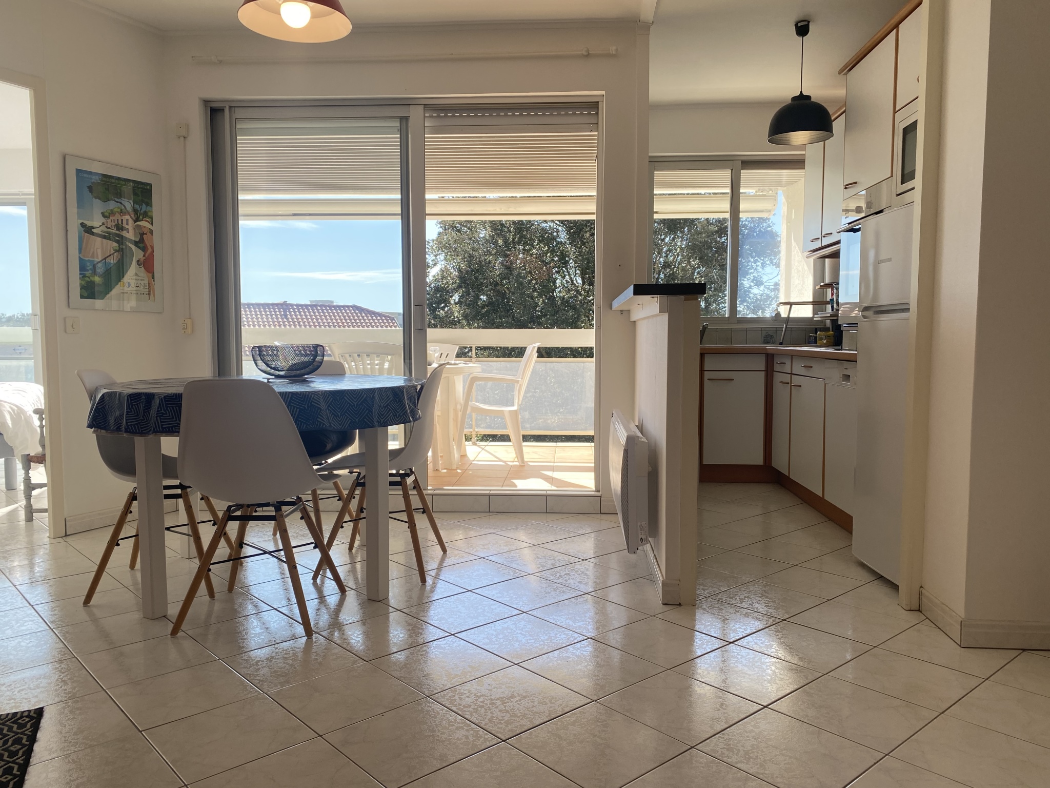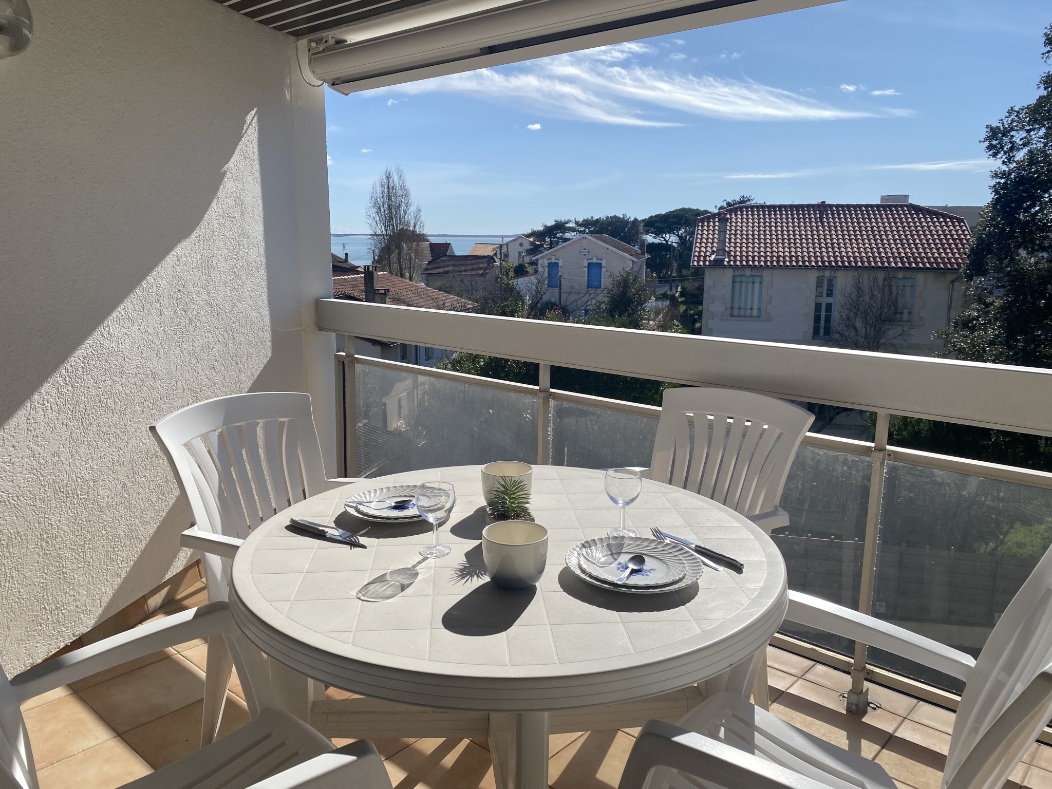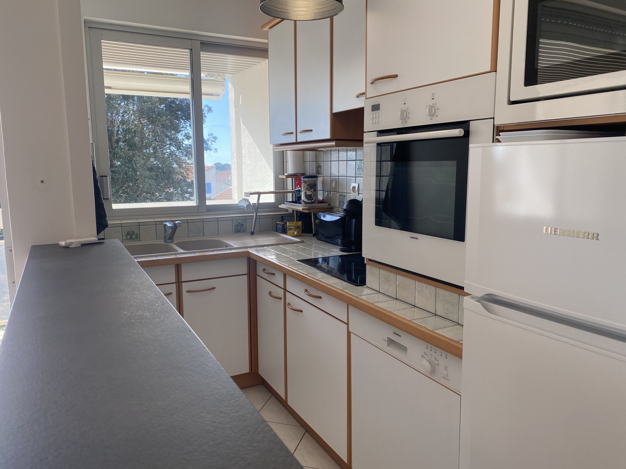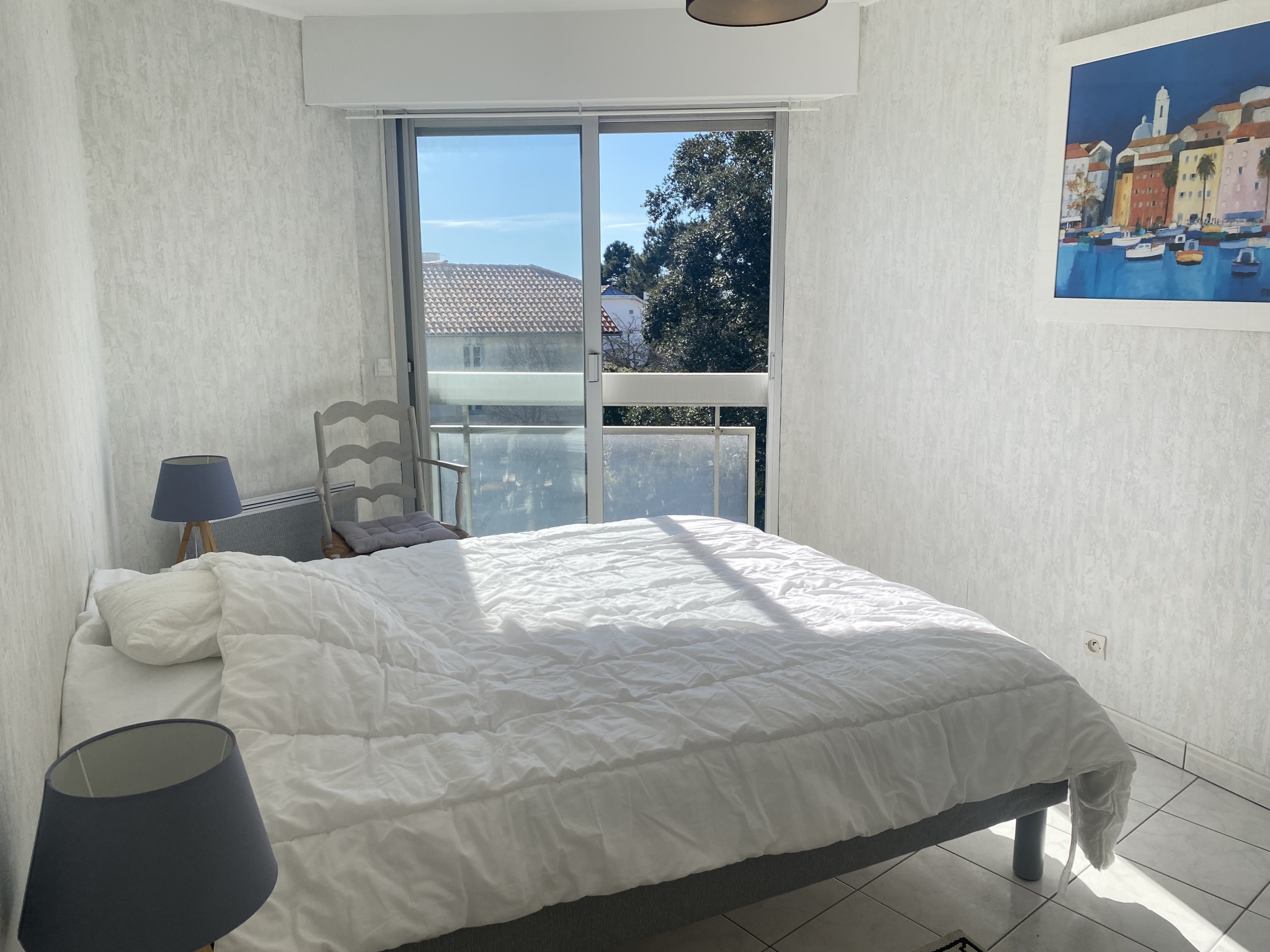 VAUX SUR MER - Dans résidence de bord de mer avec ascenseur, à 150 m de la plage, du casino et des commerces de ROYAN Pontaillac, appartement 2 pièces 48m2 avec bel aperçu mer comprenant : entrée, salle d'eau, WC séparé, coin cuisine (lave vaisselle et lave linge, four, micro onde, frigo-congel, plaques induction, hotte), séjour/salon avec TV + canapé convertible (2 pers) ouvrant sur terrasse (mobilier de terrasse), une chambre (avec lit 160, placards).