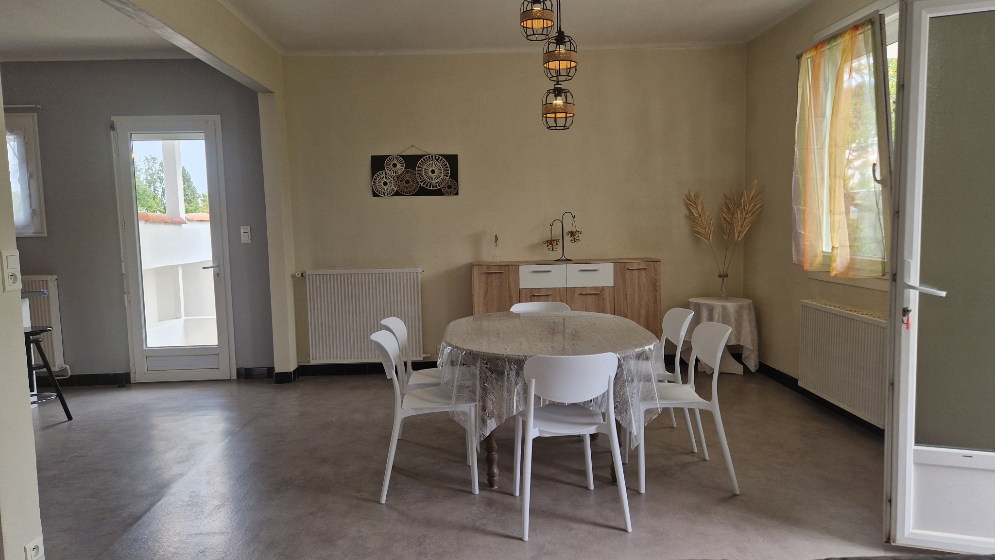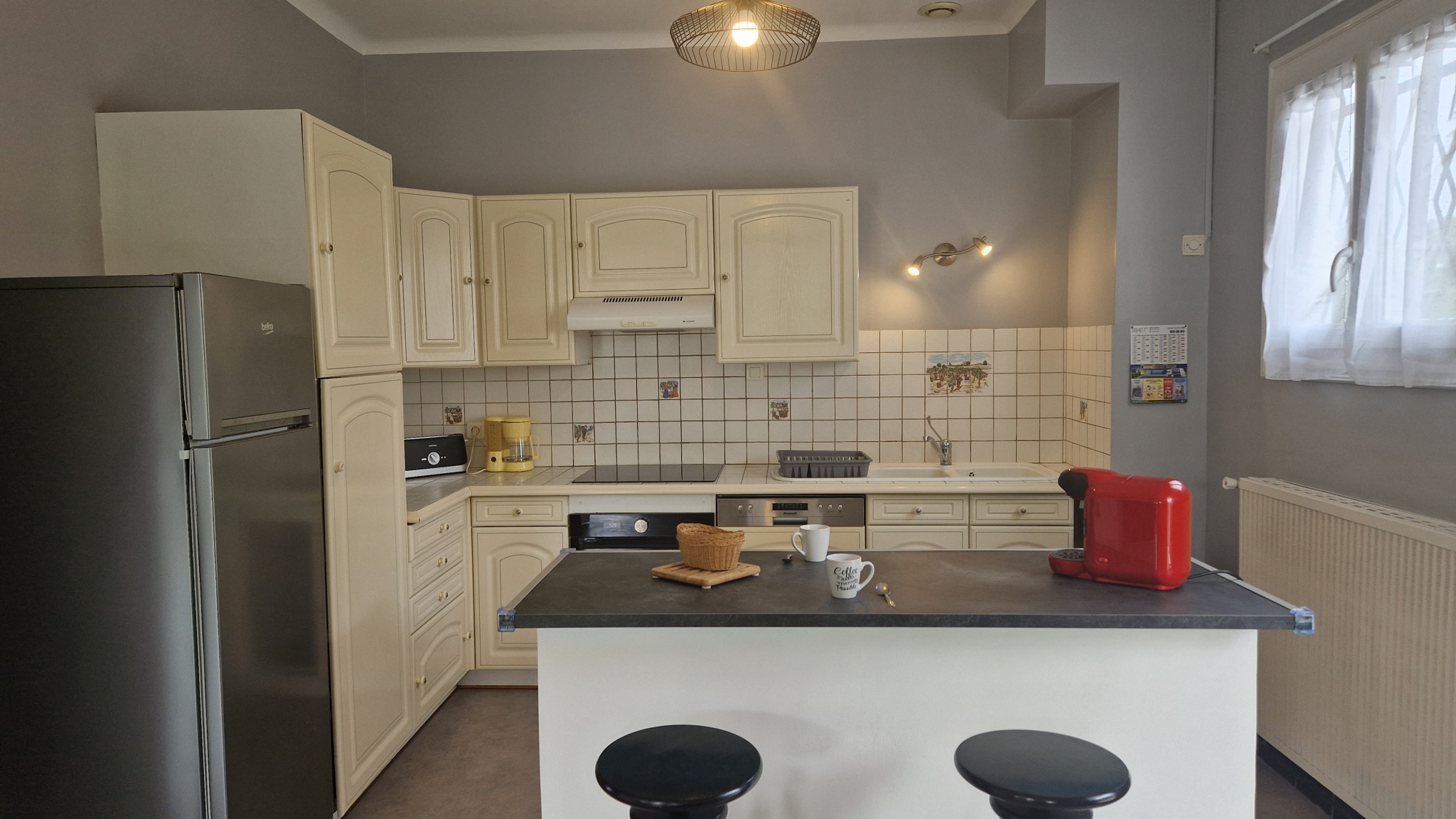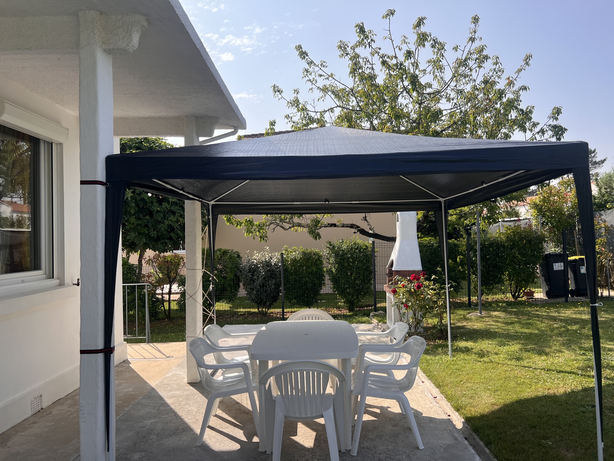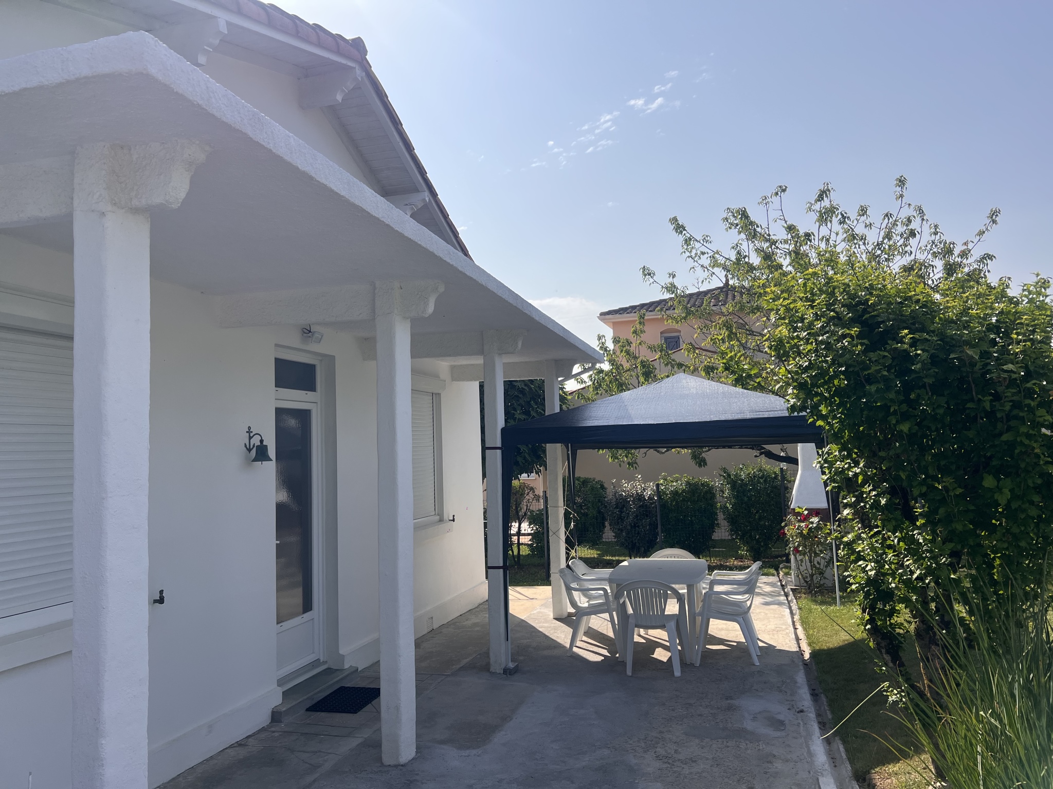 Charmante maison de plain-pied située dans un quartier calme, à seulement 700 mètres du Casino et des commerces de Royan Pontaillac, idéale pour 6 personnes. D'une superficie de 115m², elle se compose d’un salon lumineux, d’une cuisine toute équipée (bouilloire, cafetière, four, grille-pain, lave-vaisselle, micro-ondes, ect...) ouverte sur la salle à manger, de deux chambres avec lit double (140x190) et grands placards, d’une chambre avec deux lits simples (90 cm) ouvrant sur une véranda, d’une salle d’eau spacieuse avec double vasque, de WC séparés. À l’extérieur, vous profiterez d’un jardin avec salon de jardin et barbecue.