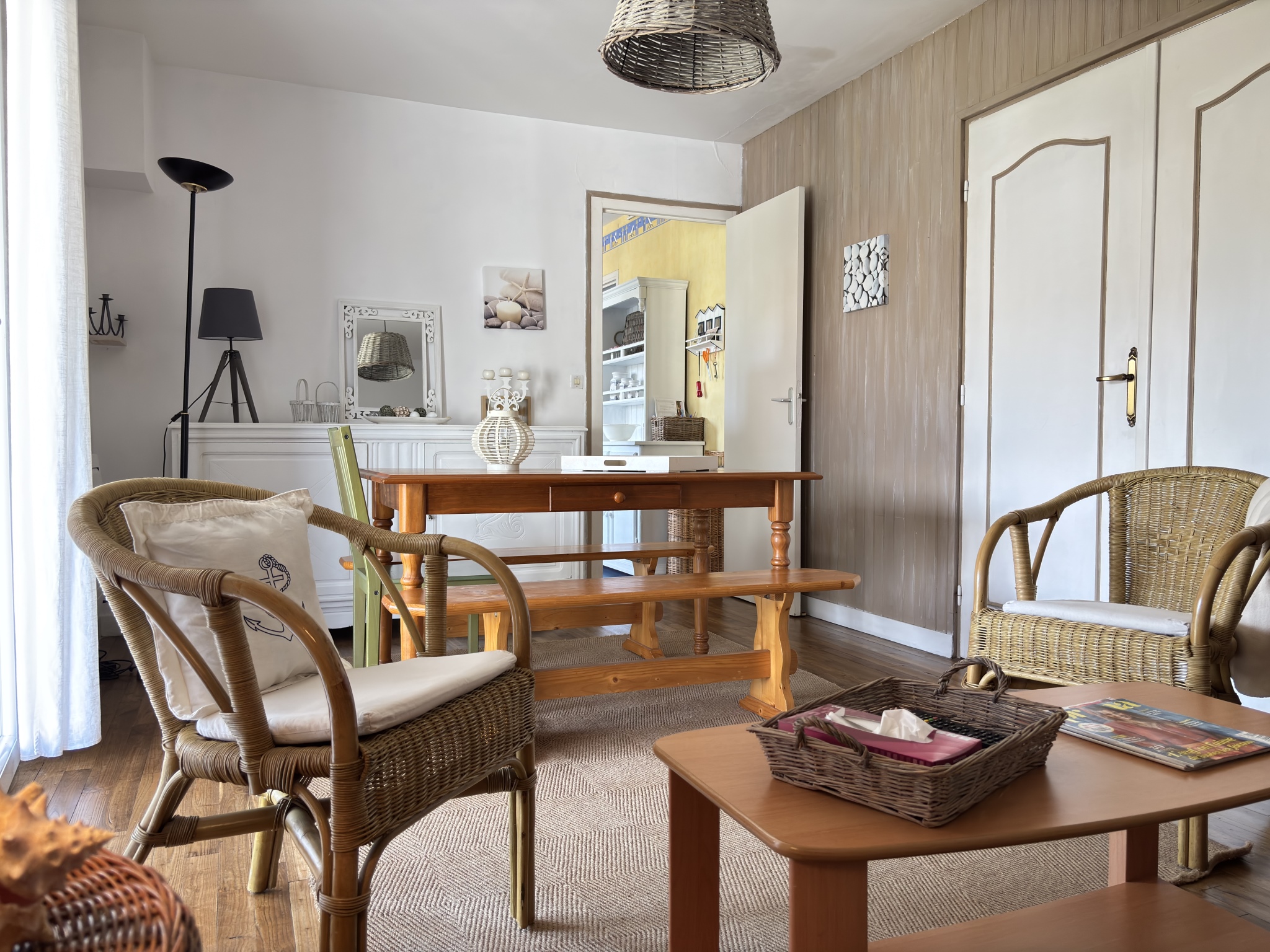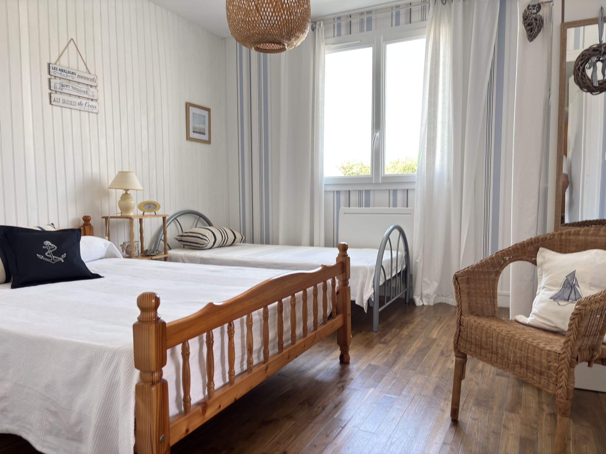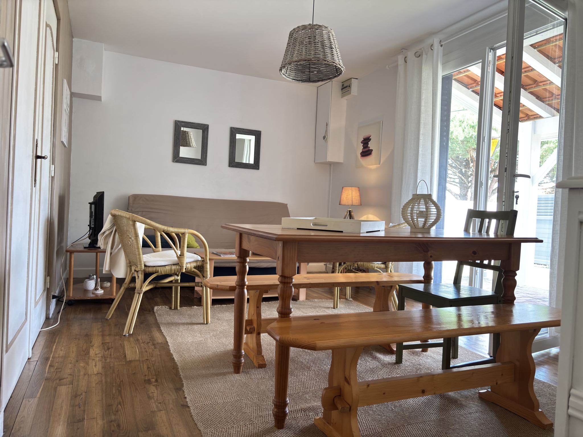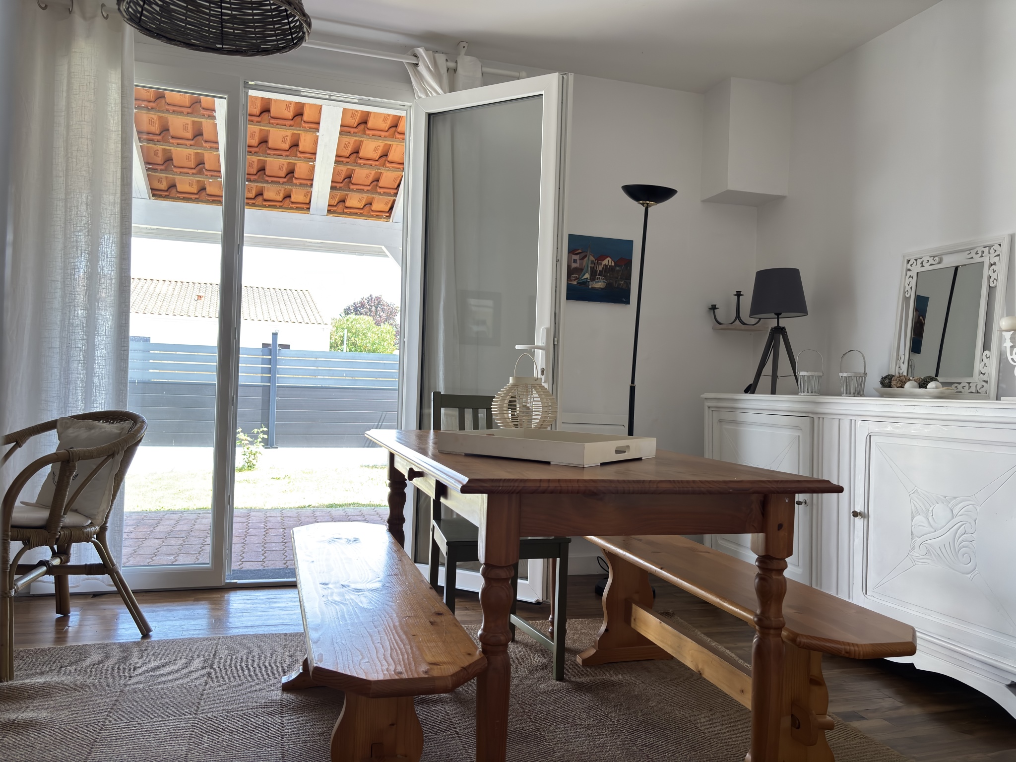 Située à seulement 2,3 km de la plages du Bureau, cette maison de 3 pièces avec jardin offre un cadre de vie agréable et fonctionnel. Elle se compose d’un séjour lumineux ouvrant sur le jardin, d’une cuisine entièrement équipée (bouilloire, cafetière, lave-vaisselle, micro-ondes, four, réfrigérateur-congélateur), d’une salle d’eau et de WC séparés. Côté nuit, elle dispose de deux chambres : l’une avec un lit double et un placard, l’autre avec un lit double et un lit simple, offrant ainsi une capacité d’accueil de 5 couchages.
