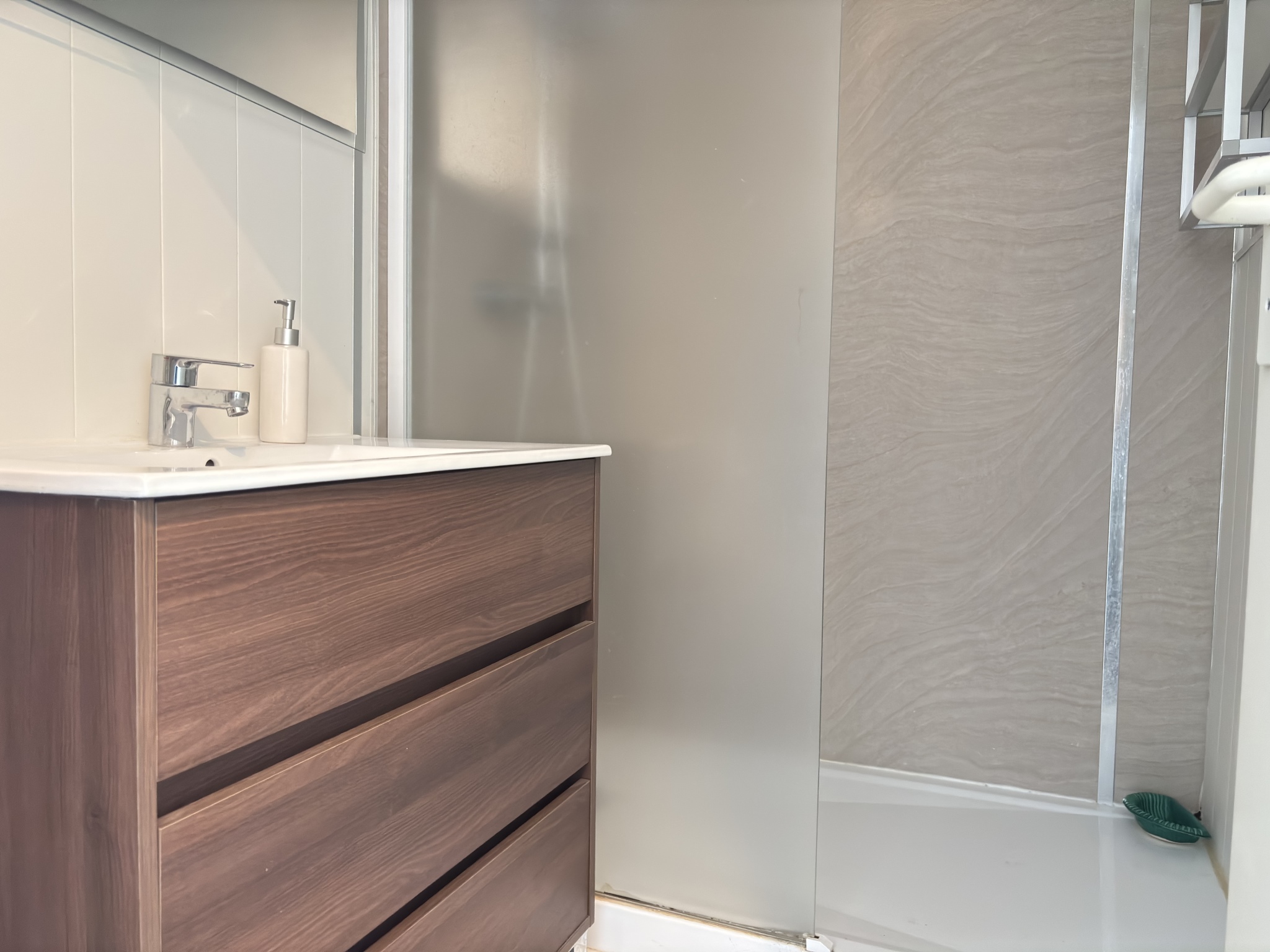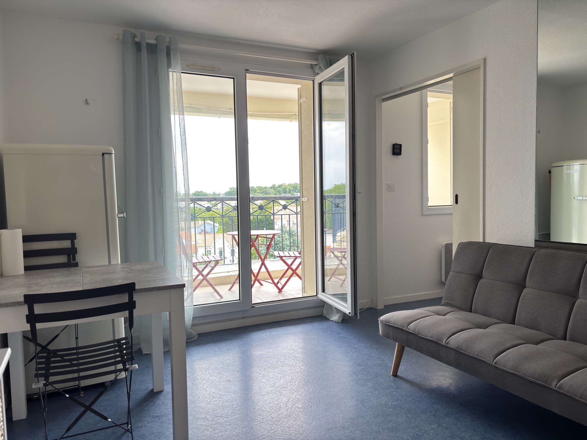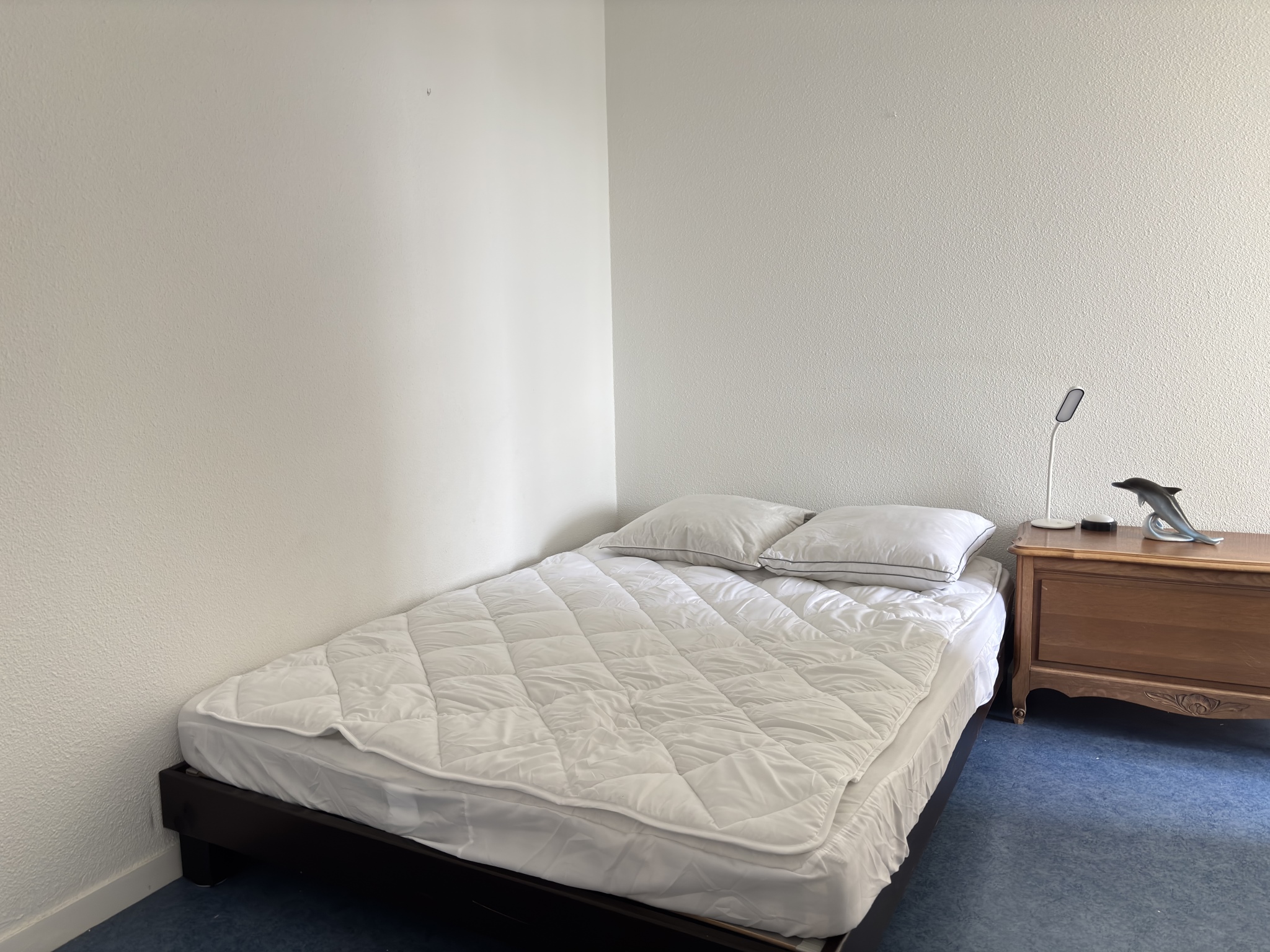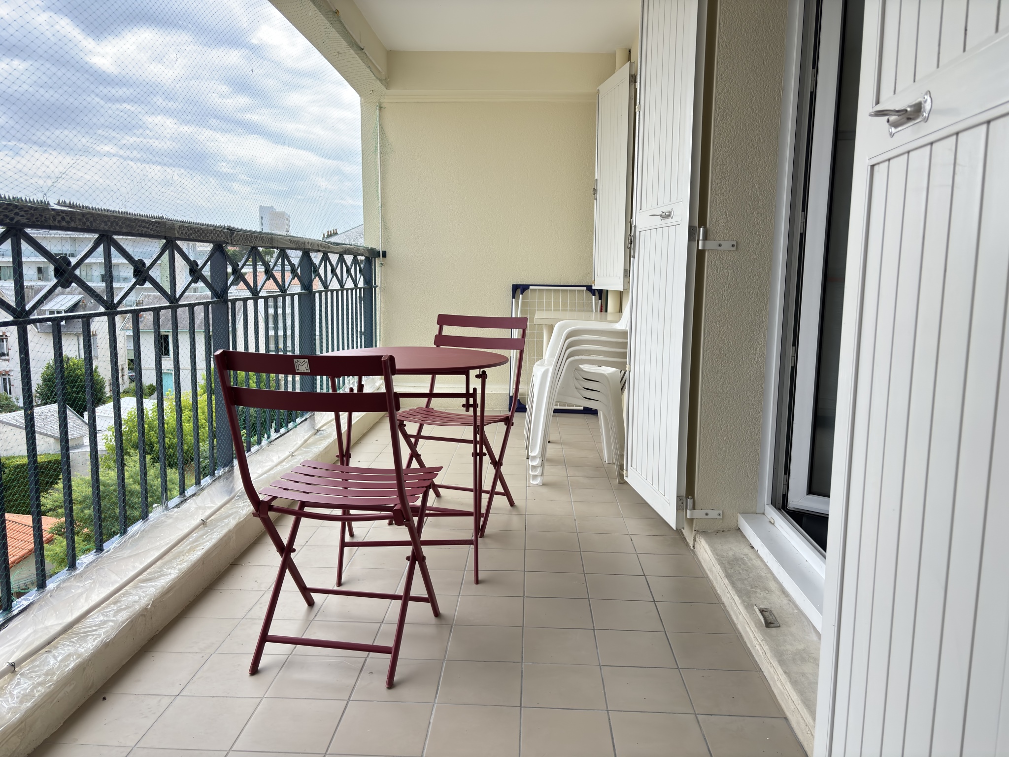 Dans résidence de bord de mer avec ascenseur et accès piscine, à 100 m de la plage, du casino et des commerces de ROYAN Pontaillac, Appartement 3 pièces comprenant : entrée, salle d'eau (1 vasque, douche italienne), wc séparé, coin cuisine équipée (mini four multifonction, LL hublot, mini LV, frigo top, plaque vitro), un lumineux séjour/salon ouvrant sur un grand balcon (table et chaises), chambre 1 avec lit 140, chambre 2 avec lit 140.