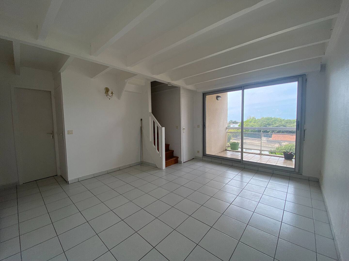 Un appartement duplex de type F3 aperçu mer proche Garden Tennis comprenant : En rez-de-chaussée : Séjour ouvrant sur balcon, kitchenette aménagée, une petite chambre avec placard, wc séparé. A l'étage : Palier avec placard, une chambre mansardée, salle de bains avec placard. Place de parking - Chauffage électrique.