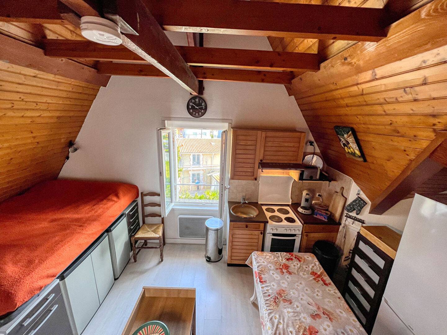 ROYAN proche Pontaillac, à seulement 400m de la plage du Chay , studio située dans une petite copropriété au 2ème et dernier étage sans ascenseur comprenant : Pièce principale avec cuisine, salle d'eau avec wc, mezzanine.