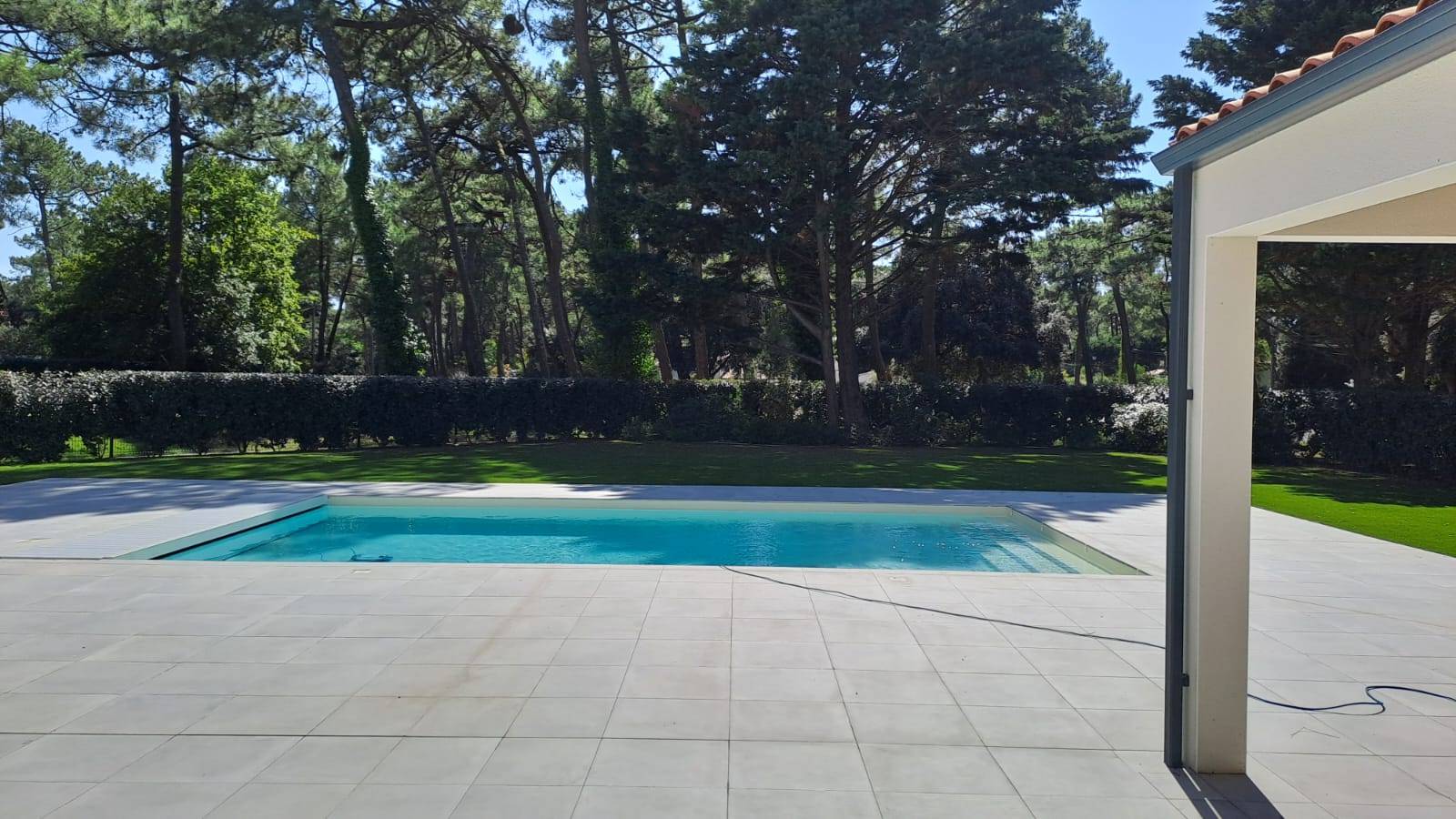 Dans parc résidentiel privé et sécurisé, Maison récente (2023) d'environ 177m² habitables comprenant entrée avec placards, W.C, cellier équipée, vaste séjour/salon/cuisine équipée (66m²) ouvrant sur grande terrasse carrelée (200m² environ) et piscine chauffée 5x9, dégagement, une chambre, salle d'eau, W.C, une seconde chambre avec placards et salle d'eau, une troisième chambre avec placards et salle d'eau, une suite parentale avec dressing, salle d'eau et W.C. Garage.