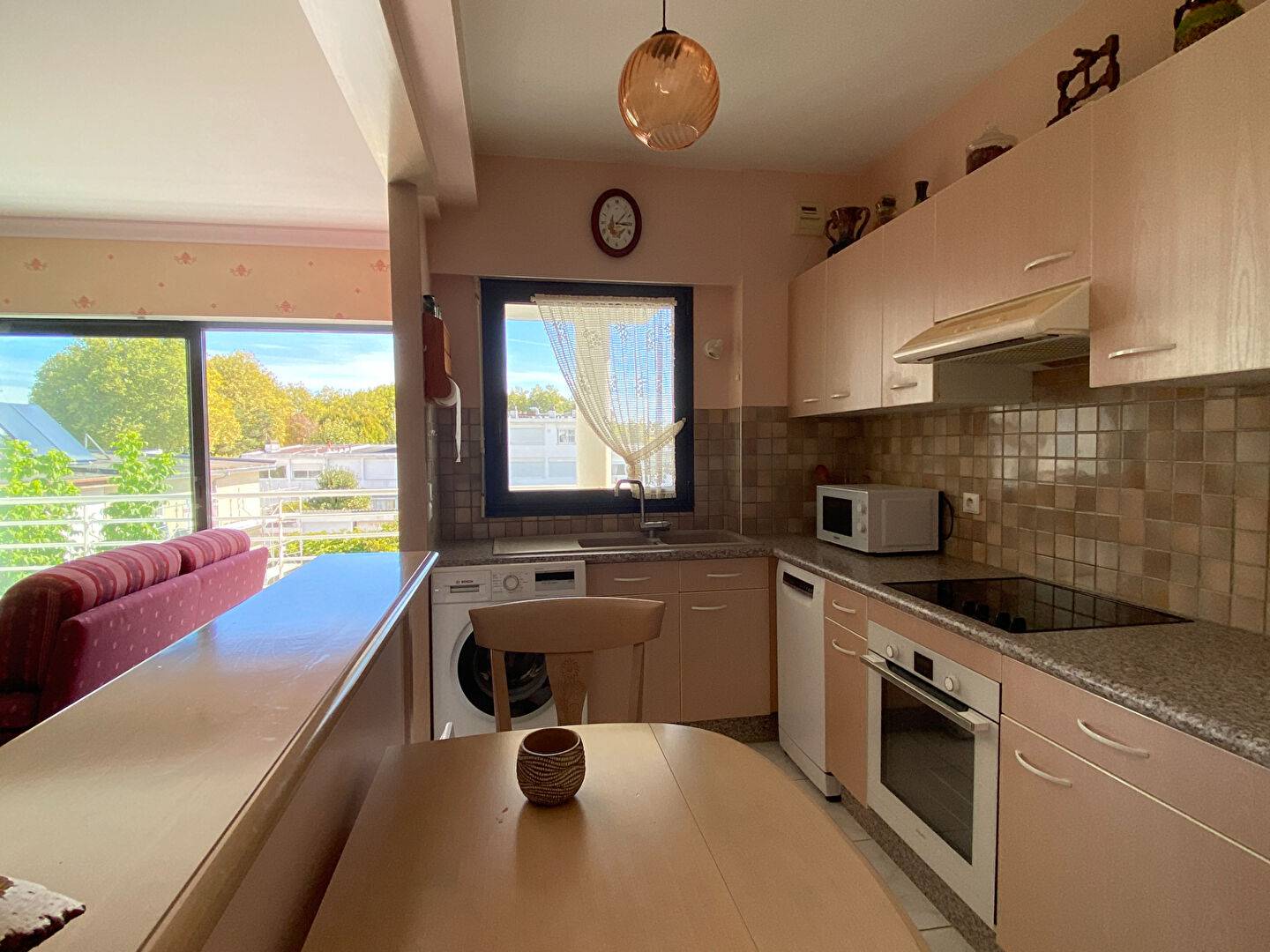 En exclusivité, dans le centre-ville de ROYAN, à deux pas des commerces, de la grande Plage et de la gare, bel appartement traversant situé au 2ème étage avec ascenseur, de trois pièces principales, d'une superficie de 74m² environ et comprenant : une entrée avec placard, grande pièce de vie ouvrant sur agréable balcon exposé en Sud, cuisine ouverte, aménagée et équipée, un couloir de dégagement, deux chambres avec placard, et donnant sur 2nd balcon, salle d'eau, WC séparés. Chauffage électrique.