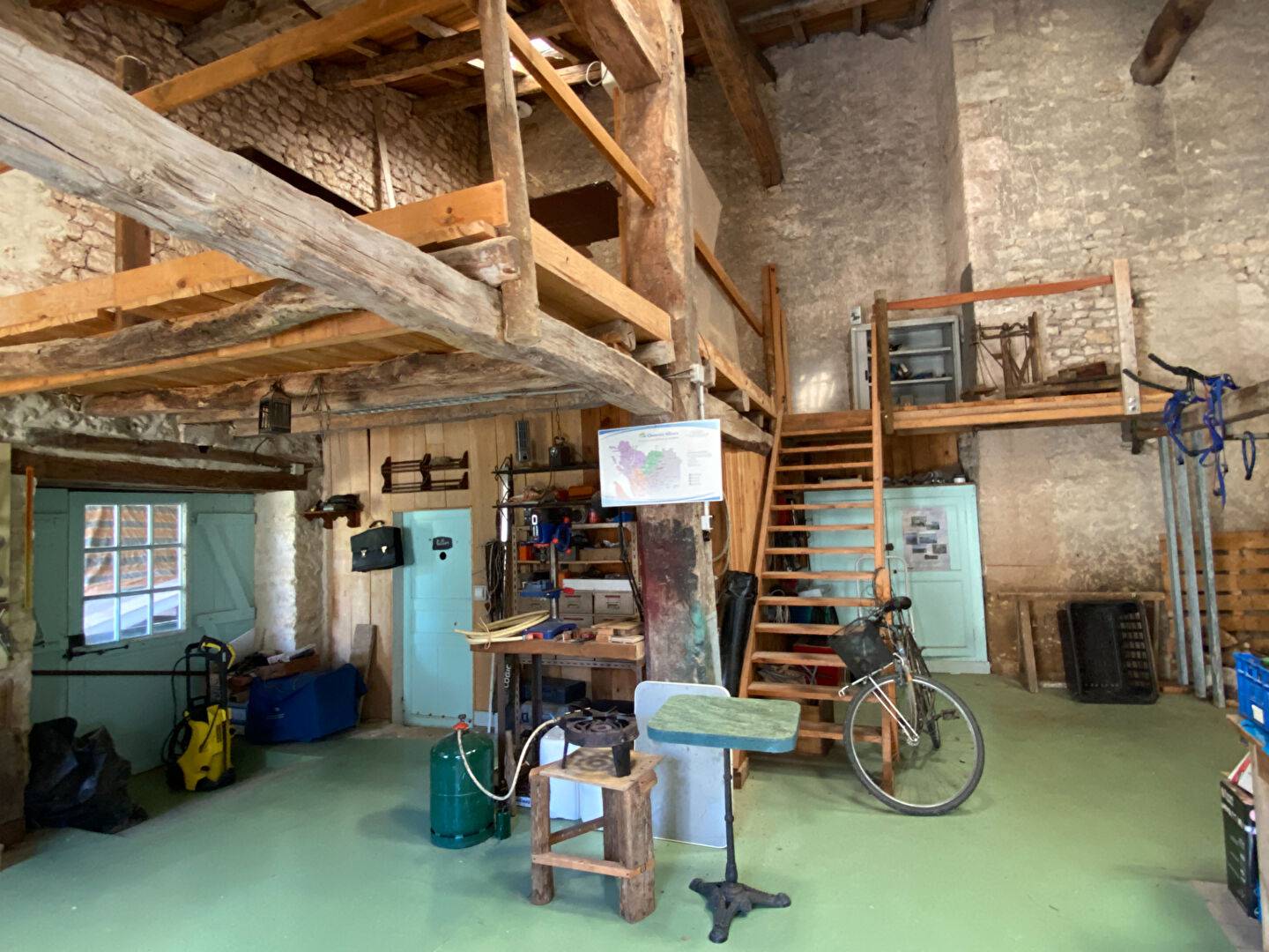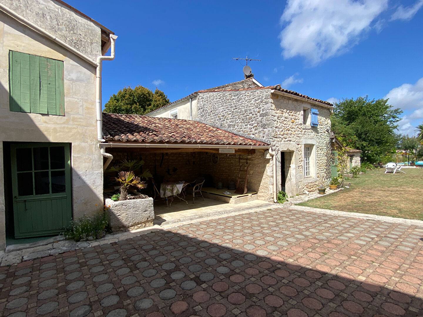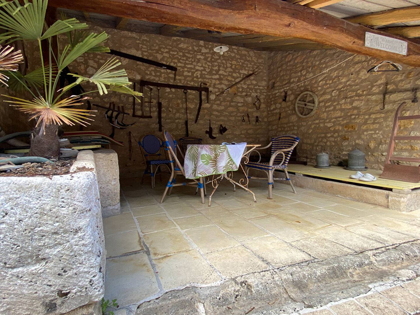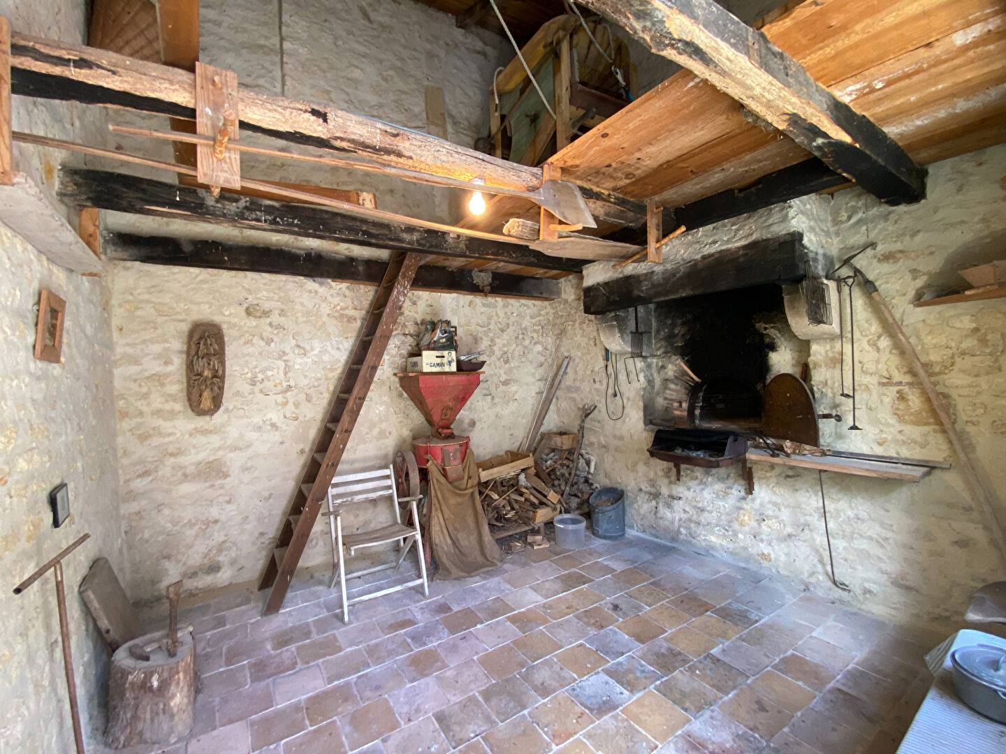 Une grande pièce attenante au porche d'entrée, partiellement aménagée avec point d'eau et un étage pouvant être réhabilité en logement, un préau carrelé, un four à pain, un abri de jardin, deux puits.