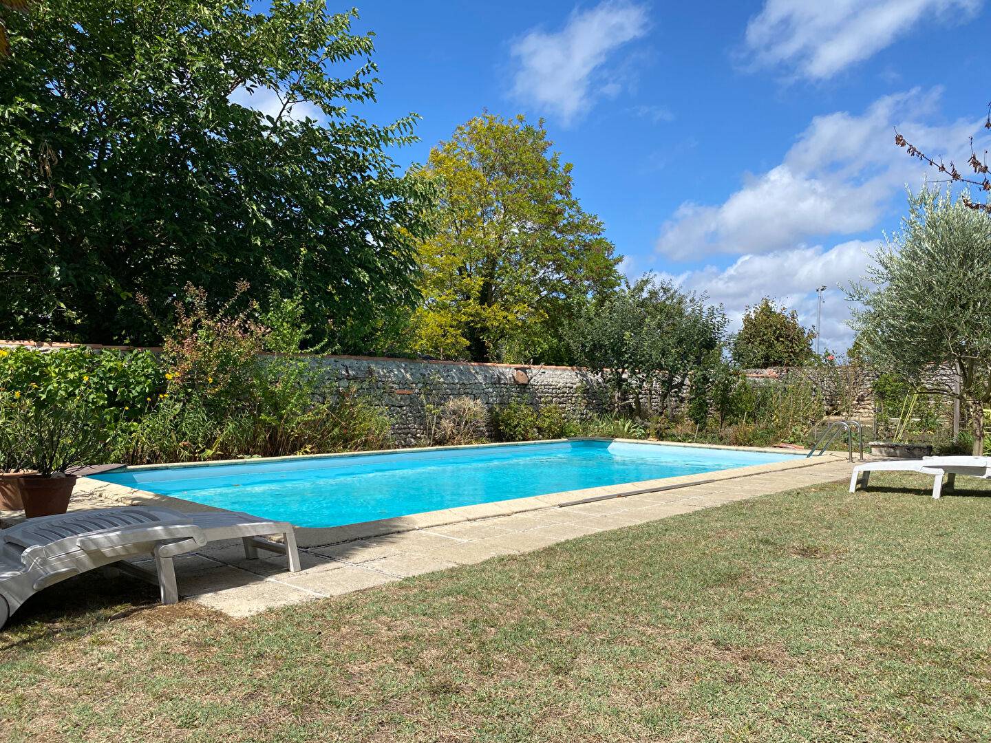 Un magnifique jardin arboré, clos de murs en pierre, dans lequel on retrouve une piscine de 10 x 5 mètres.