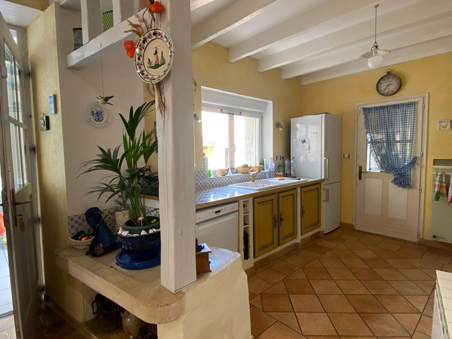 Côté dépendances : Une arrière cuisine avec un grand chai/atelier et une partie cellier, dans le prolongement un grand garage avec local piscine.