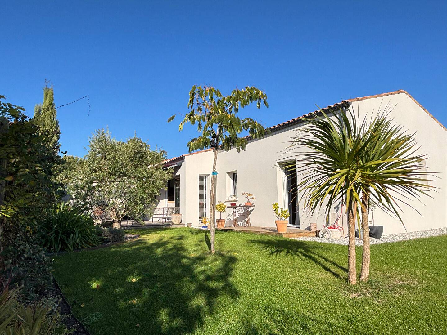 700 m bourg de St Sulpice de Royan, villa de 2020, de 130m² habitable, neuve, en parfait état, comprenant entrée dégagement, WC, SDE, vaste pièce de vie de 46m² ouvrant sur terrasse sud ouest, 2 WC, 3 chambres. Joli jardin clos et paysagé, cellier, garage carrelé, menuiseries double vitrage PVC, tout à l 'égout. (4.60 % honoraires TTC à la charge de l'acquéreur.)