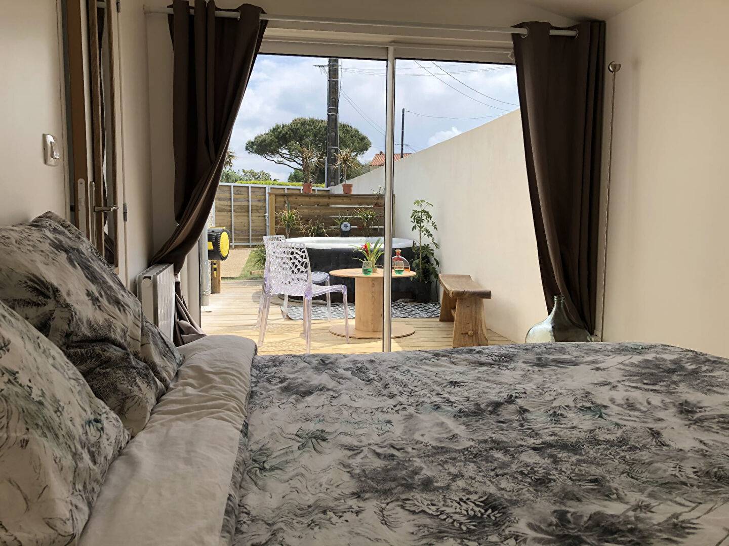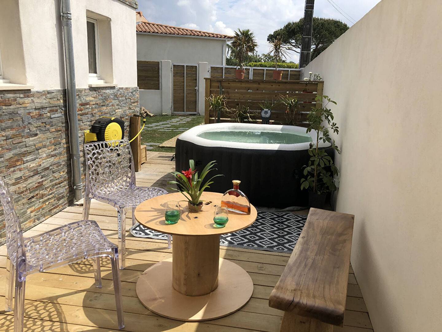 Terrasse bois, jacuzzi.