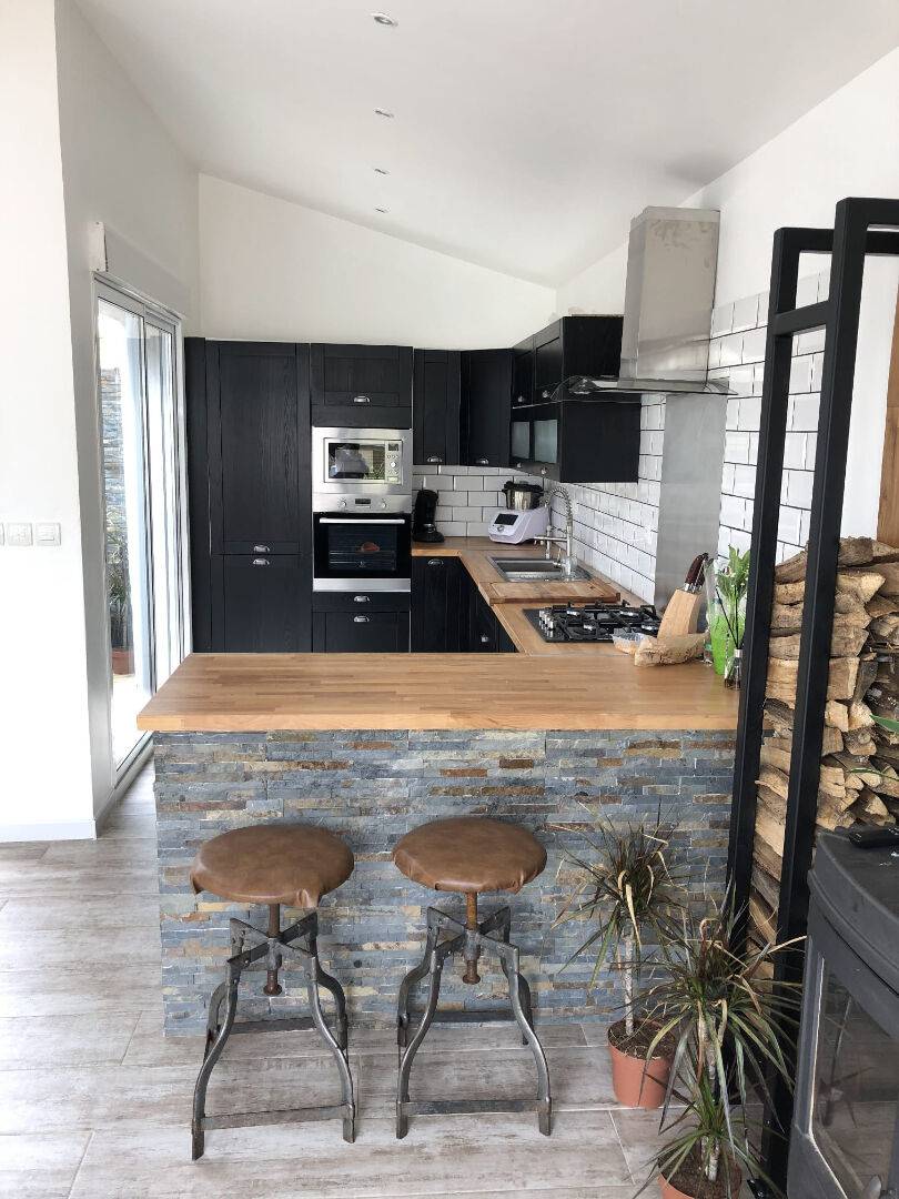 Maison d'environ 71m² habitables comprenant: séjour/cuisine ouverte équipée, patio, une chambre, salle d'eau, W.C. Buanderie.