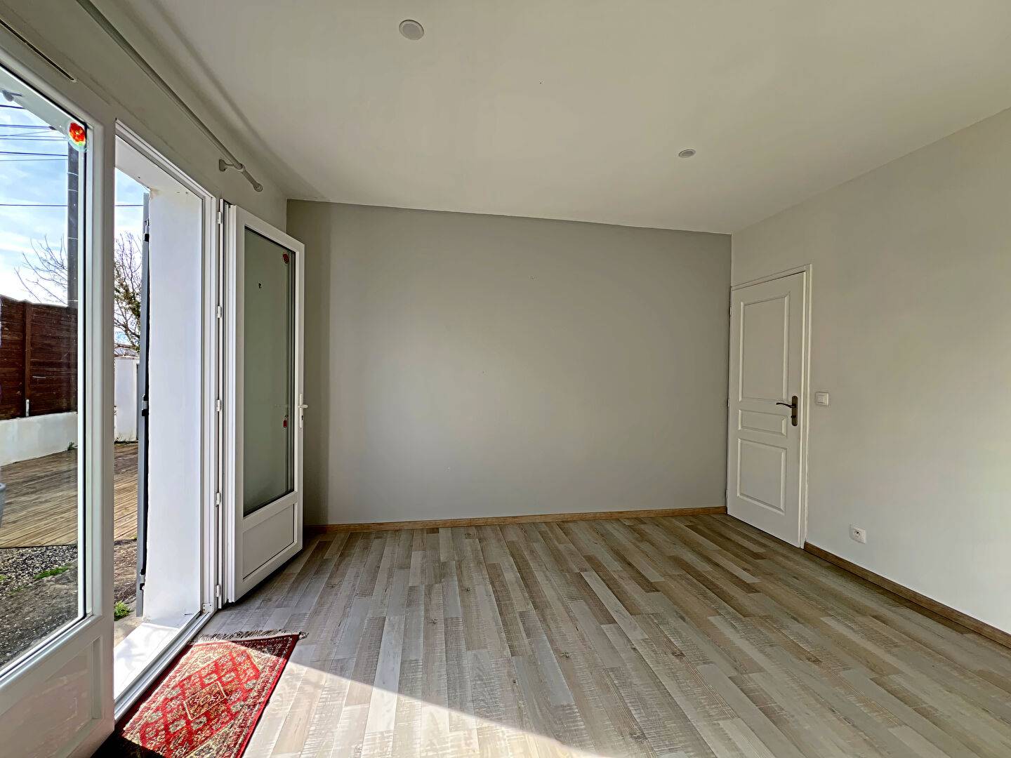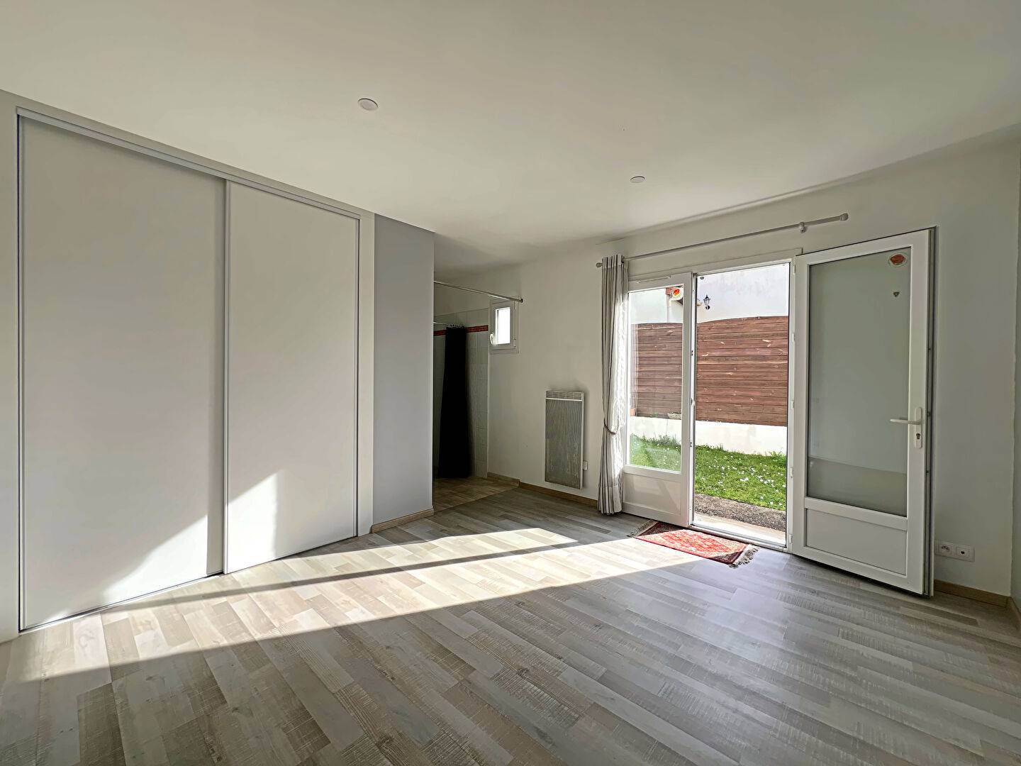 Côté Jardin : La pièce de vie s'efface devant une terrasse ensoleillée et un jardin intimiste, parfaits pour vos soirées d'été.
