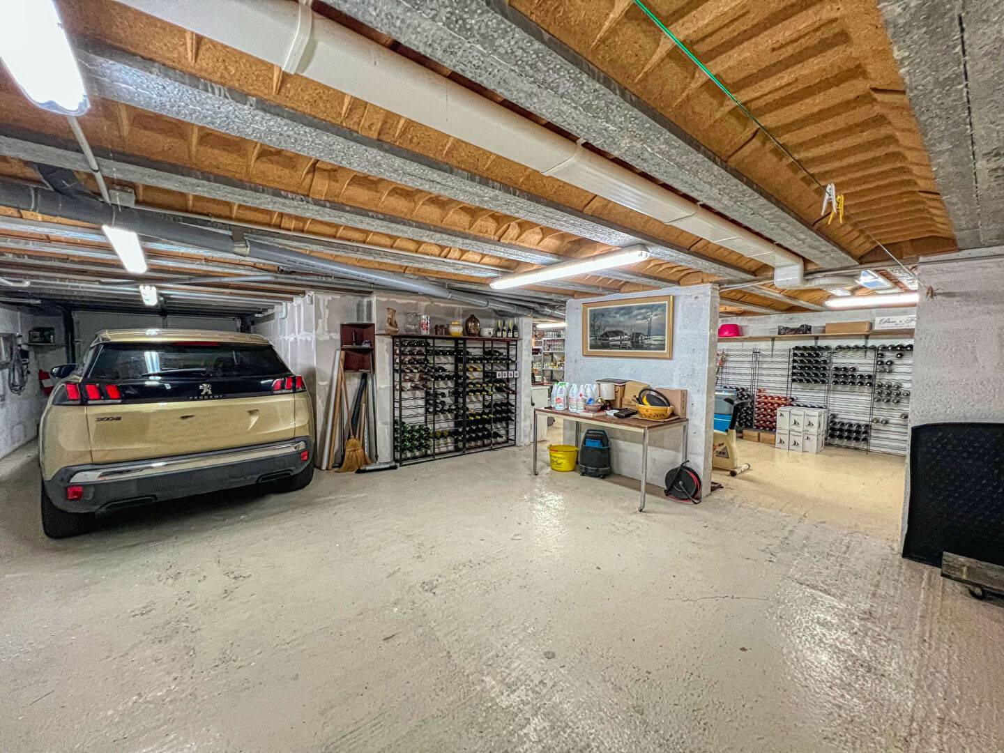 Au sous-sol, profitez d'une pièce aménagée pouvant faire office de 4ème chambre, bureau ou salle de loisirs, d'un grand garage et d'un atelier spacieux, parfait pour le bricolage ou le stockage.
