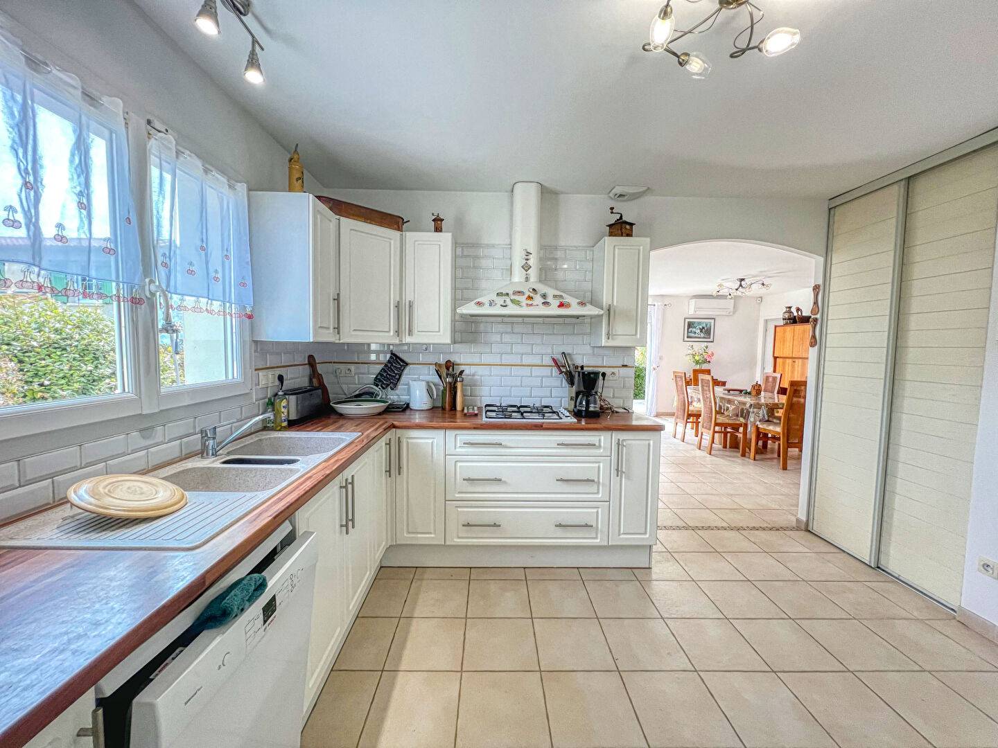 Vous trouverez de plain-pied une belle pièce de vie lumineuse ouvrant sur une terrasse exposée sud-ouest, une cuisine semi-ouverte, aménagée, avec arrière-cuisine attenante, une suite parentale avec salle d'eau privative et placard, deux autres chambres avec placards, une seconde salle d'eau, ainsi qu'un WC indépendant.