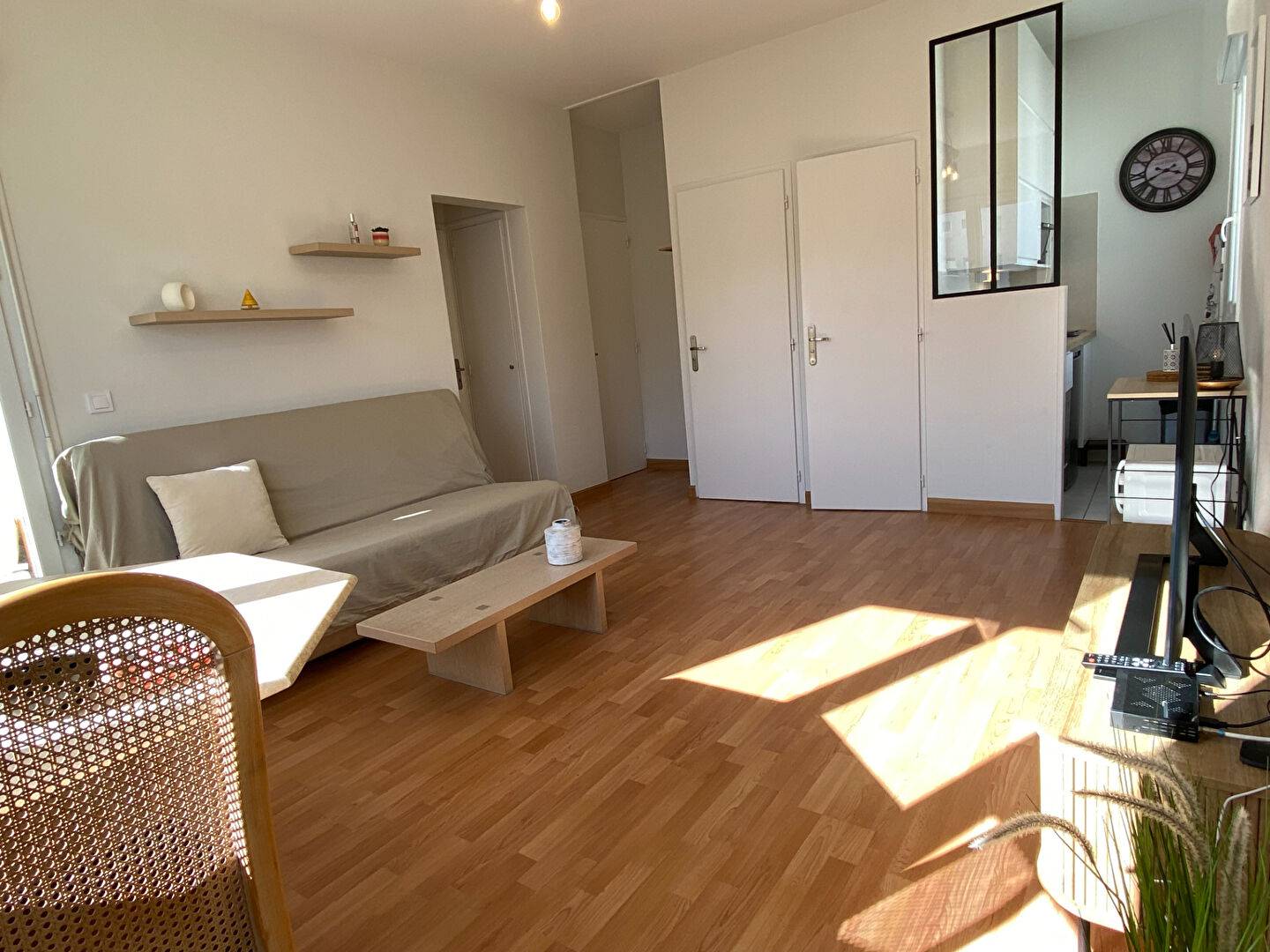 Au 1er et dernier étage, d'une agréable résidence, appartement de 2 pièces principales, entièrement rénové, pour une surface habitable de 33m² env. et comprenant : Une entrée, un salon-séjour avec porte-fenêtre ouvrant sur terrasse couverte de 7m² (exposée en Sud), cuisine aménagée et équipée, chambre avec placard, salle d'eau et wc. Chauffage électrique. Possibilité d'acquérir un garage en sus.