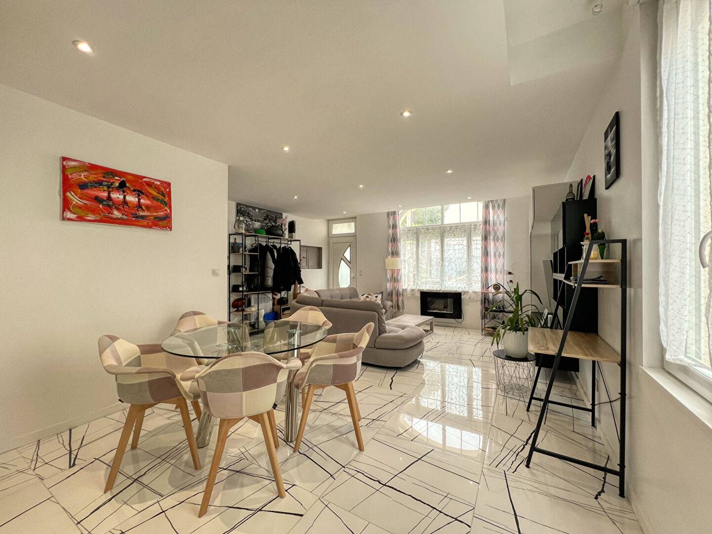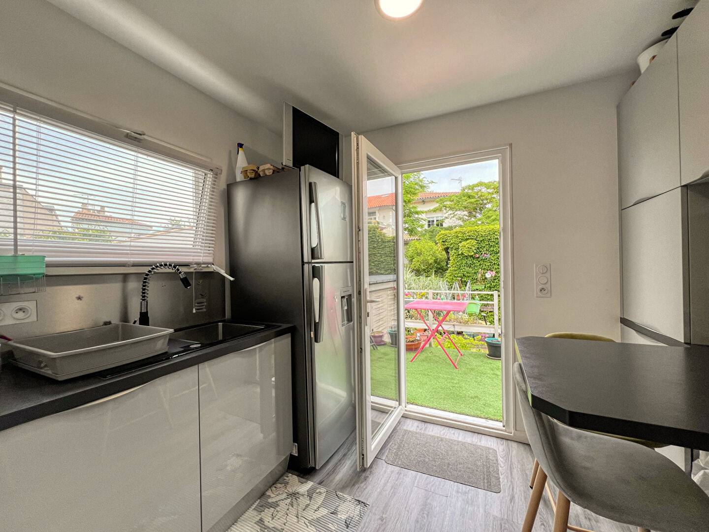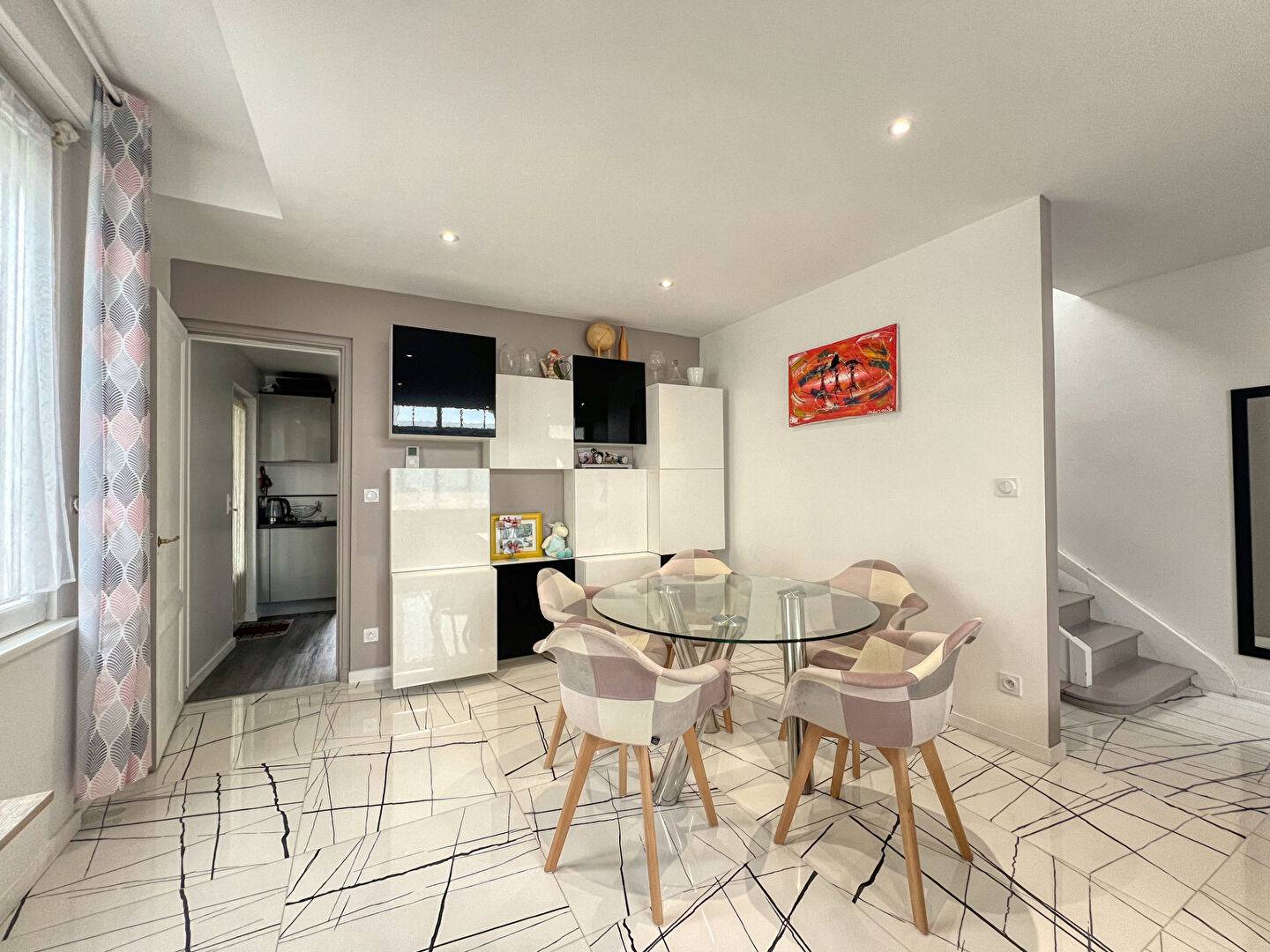 ROYAN - A seulement 400m de la plage et 300m des commerces, venez découvrir cette charmante maison entièrement rénovée comprenant au rez-de-chaussée surélevé : Séjour-salon, cuisine aménagée ouvrant sur terrasse, wc. A l'étage : Palier, deux chambres, salle d'eau et wc. Au rez-de-jardin et attenant : Pièce pouvant servir de troisième chambre, salle d'eau avec wc. Terrasse - Cabanons extérieurs - Caves - Possibilité de stationner 3 voitures. Chauffage par pompe à chaleur réversible air/air et radiateurs . (4.74 % honoraires TTC à la charge de l'acquéreur.)