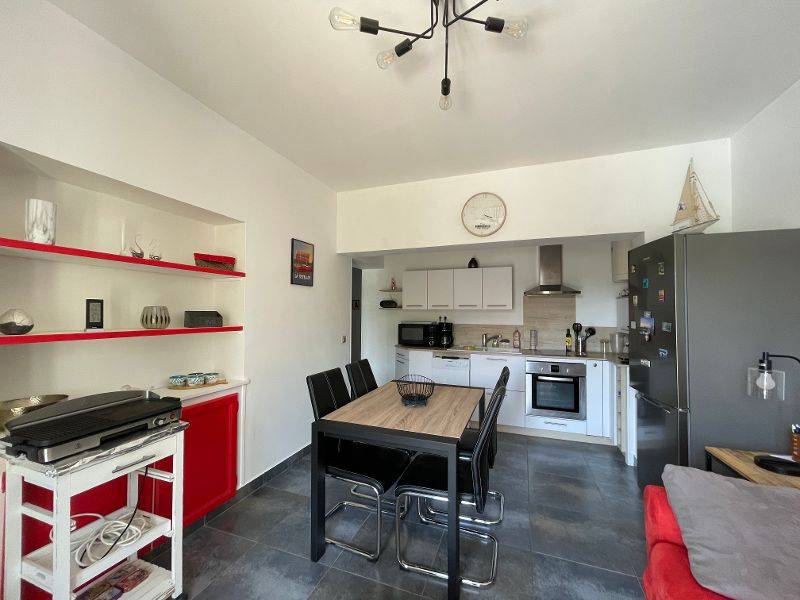 Royan, très beau T3 situé au 1er étage d'une petite copropriété entre la plage du chay (située à 700m) et le marché de Royan. Entrée avec placards, un séjour avec cuisine aménagée et équipée,, deux chambres avec placard, salle d'eau et wc séparé. Le séjour et une chambre ouvrent sur un balcon de 9 m². Place de parking privée. (5.45 % honoraires TTC à la charge de l'acquéreur.)