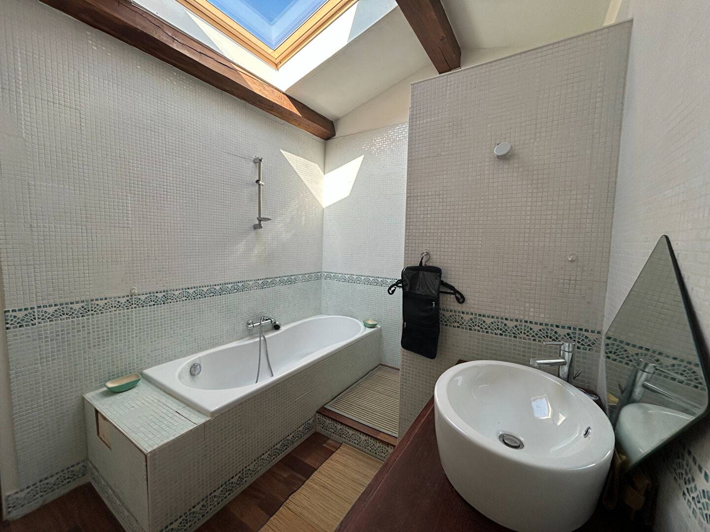 A l'étage: palier, une chambre avec sa salle d'eau, un W.C, un dégagement, deux chambres, salle de bains (baignoire et douche).