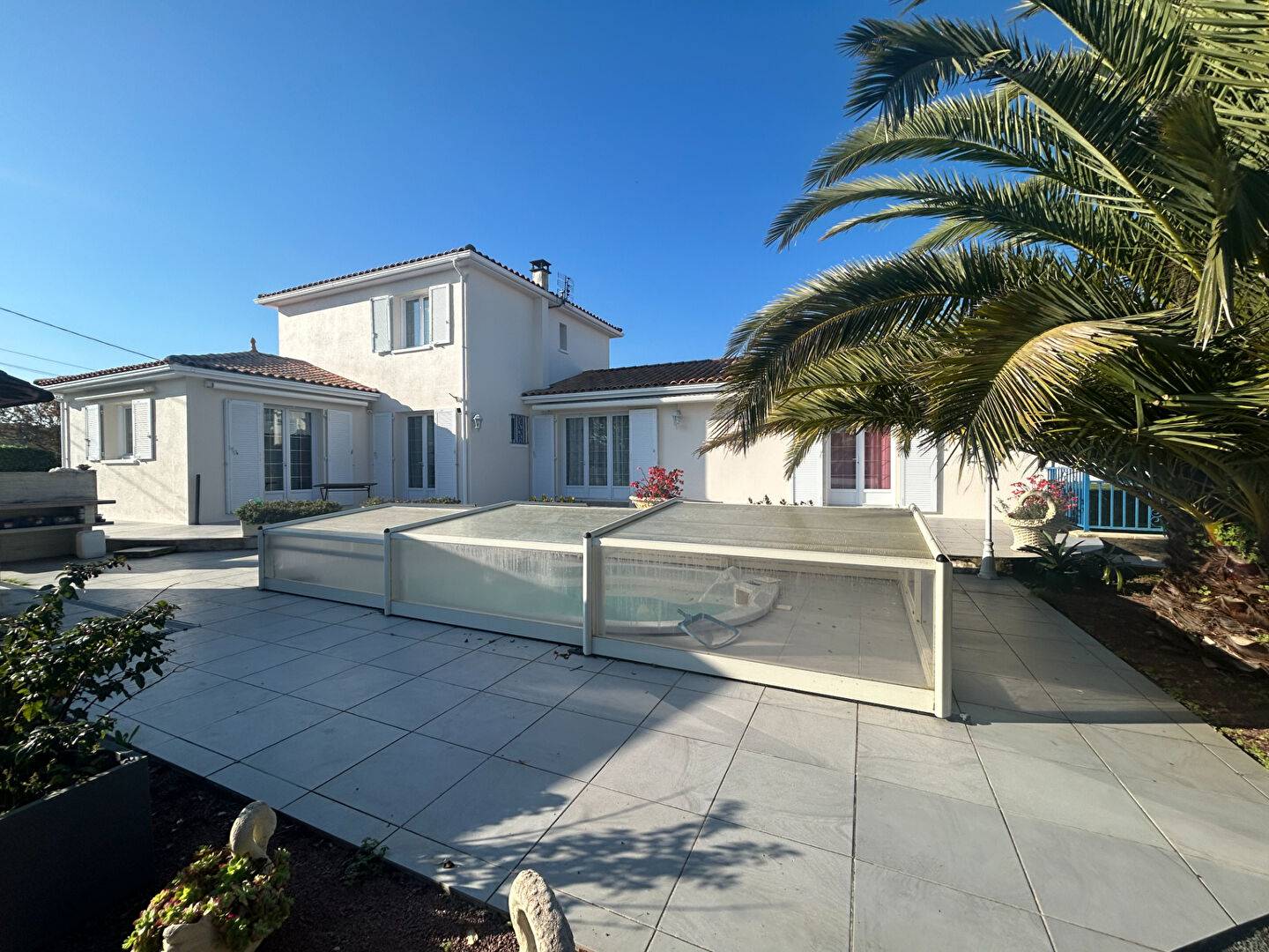 Terrasse de 140m². Pergola en bois avec bar d'été.