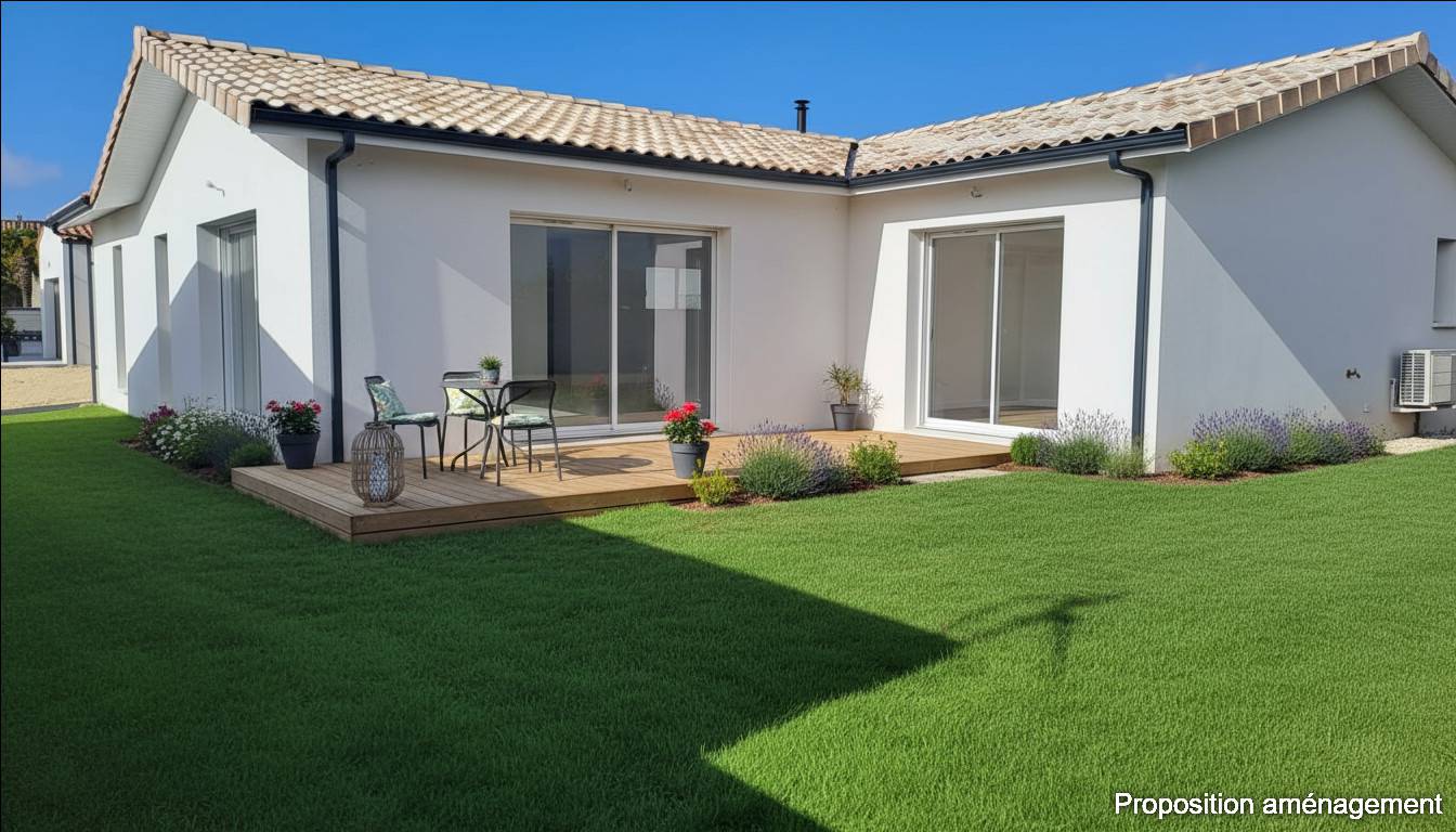 Maison neuve de plain-pied d'environ 120m² habitables comprenant: pièce de vie, suite parentale avec dressing, salle d'eau et W.C, deux autres chambres, salle d'eau, W.C séparé.