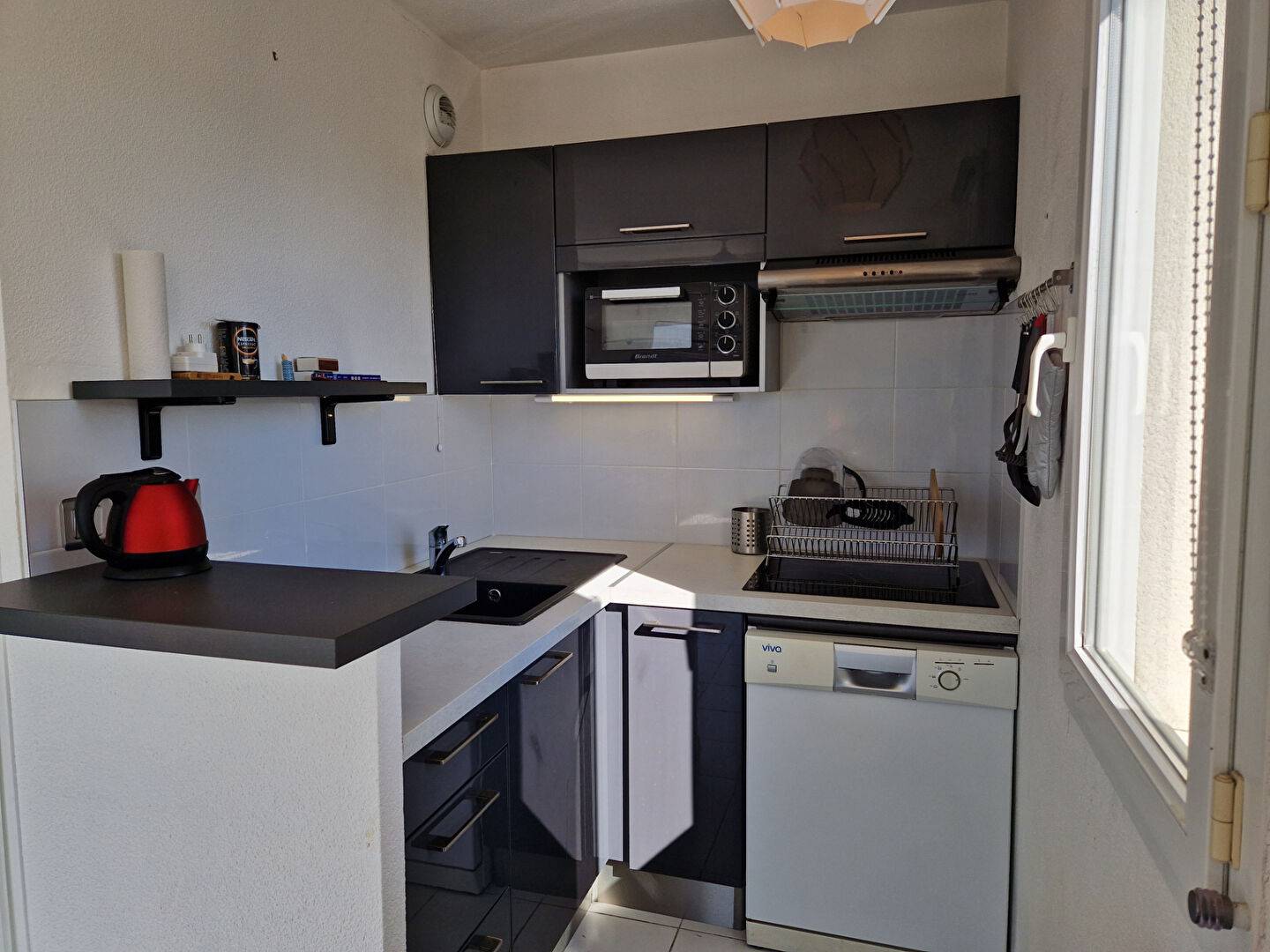 Pontaillac, vue dégagée pour ce beau 2 pièces en parfait état avec cuisine équipée ouverte sur séjour exposé sud ouest ouvrant sur terrasse avec store, SDB, WC, chbre, placard avec raccordmnt l.linge, résidence de bon standing avec ascenseur, accès piscine, local à vélos. (5.67 % honoraires TTC à la charge de l'acquéreur.)